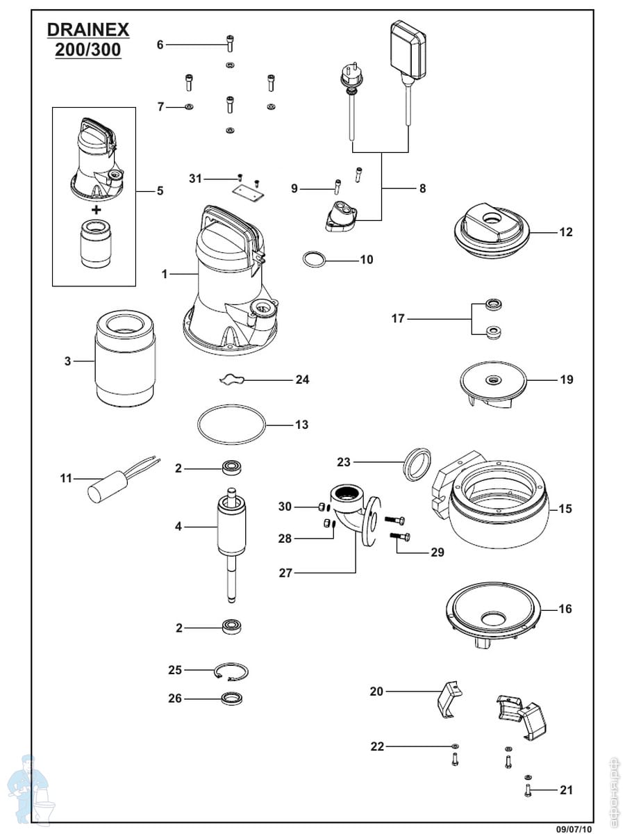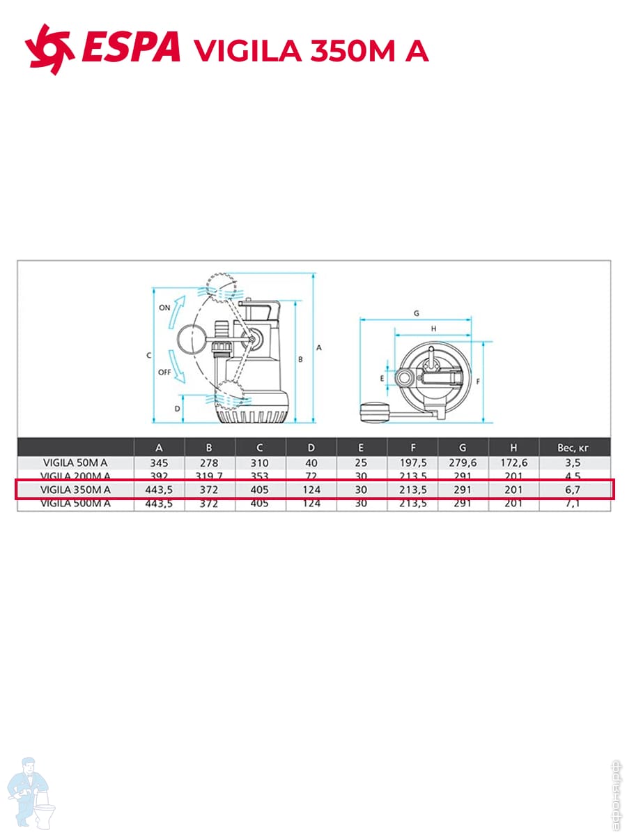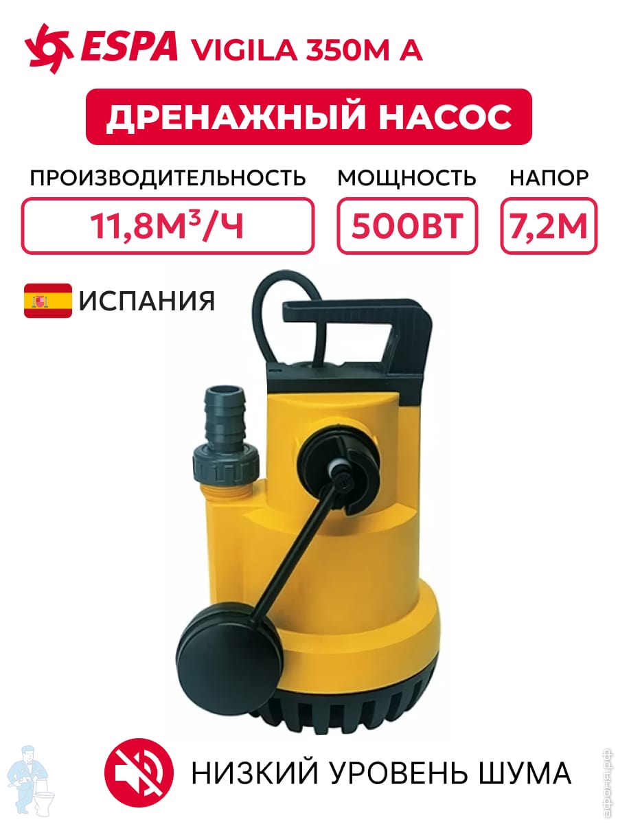 Погружной дренажно-фекальный насос с поплавком ESPA Drainex 302M A центробежный одноступенчат. 96706Код: 24065