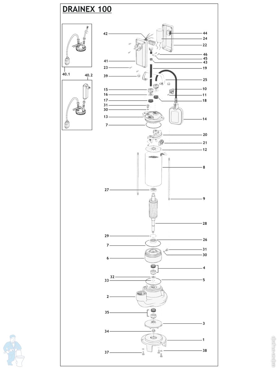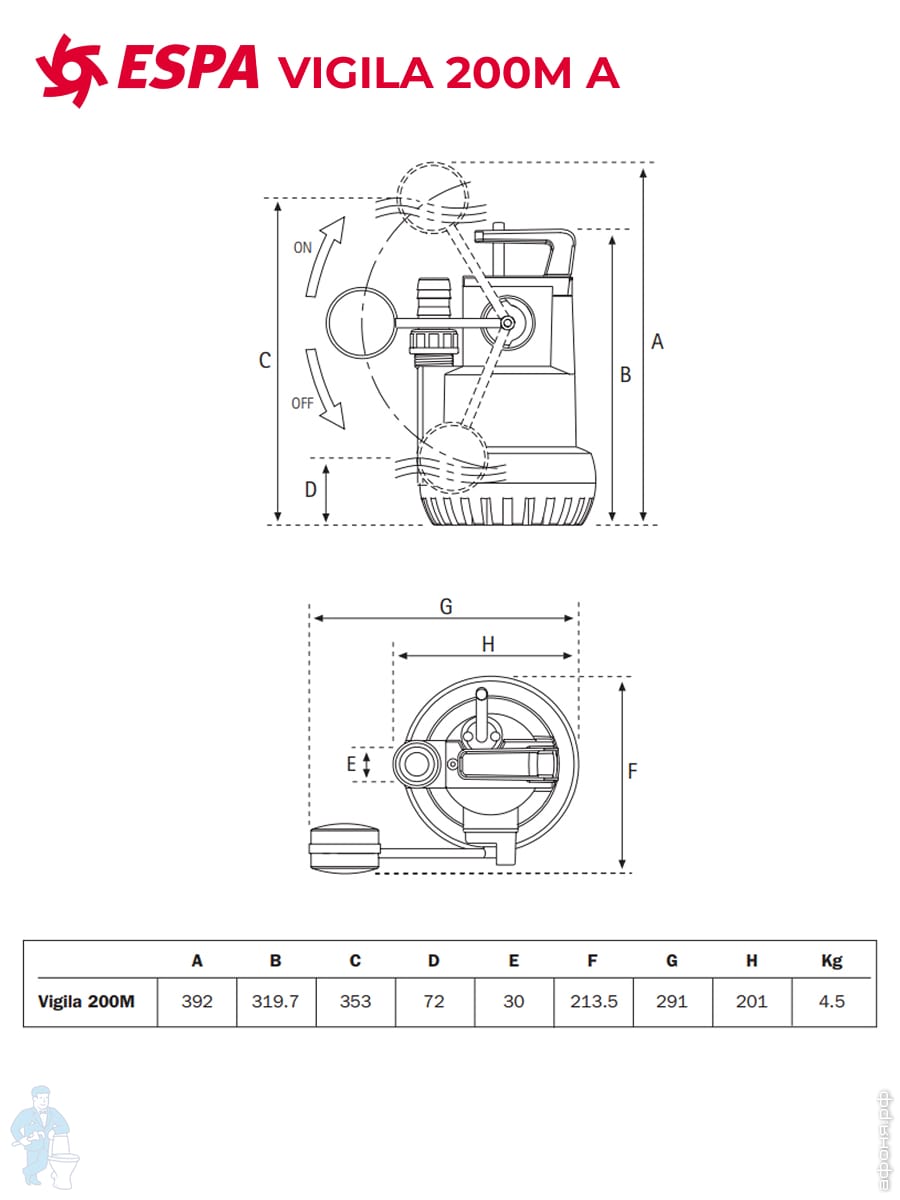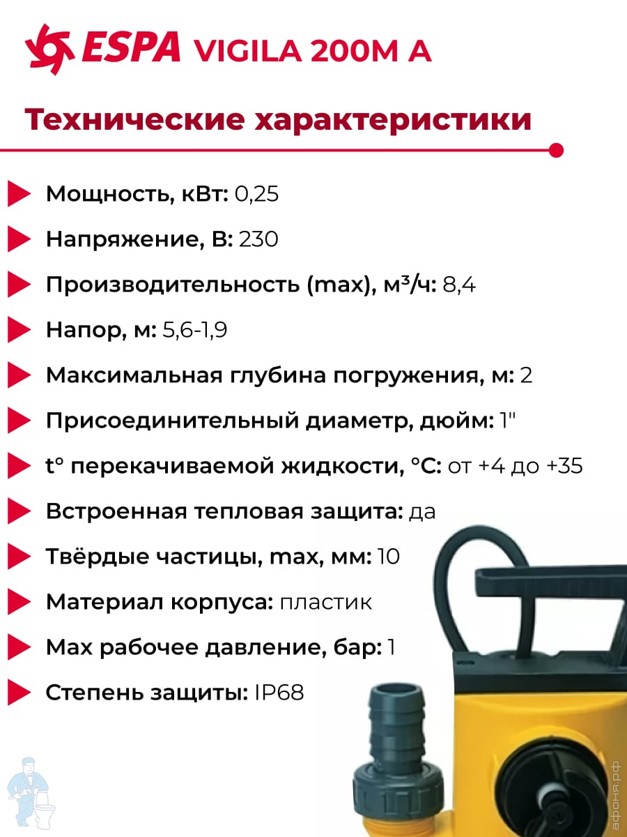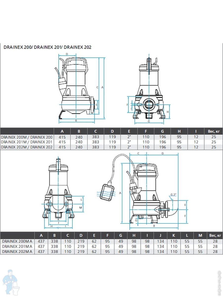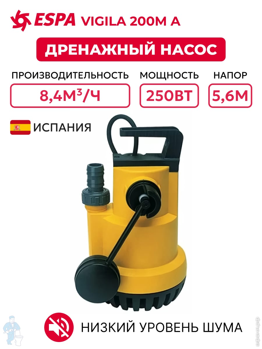 Погружной дренажно-фекальный насос с поплавком ESPA Drainex 202M A центробежный одноступенчат. 96676Код: 24062