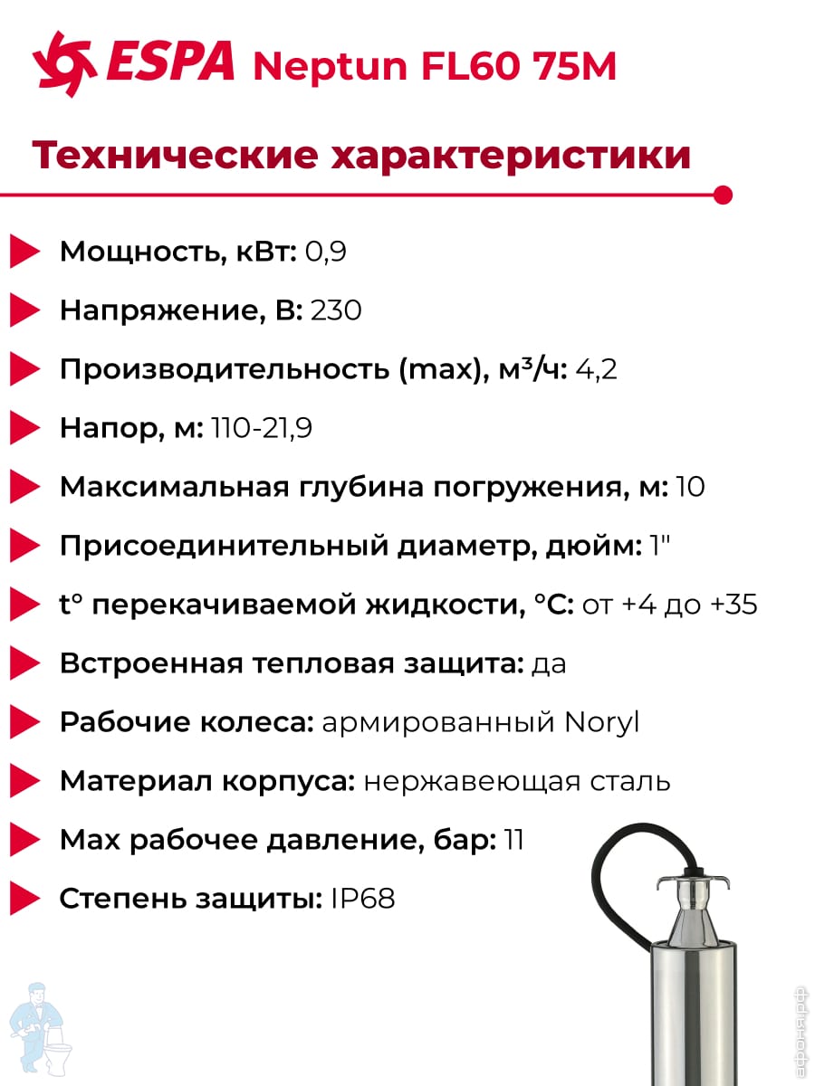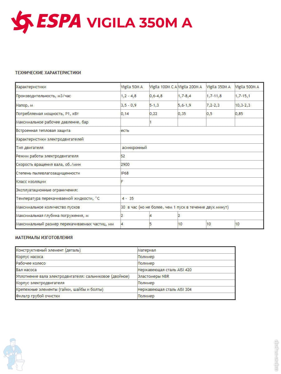 Насосы компании ESPA бывают: