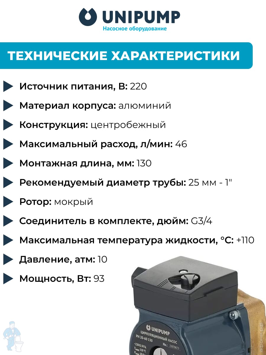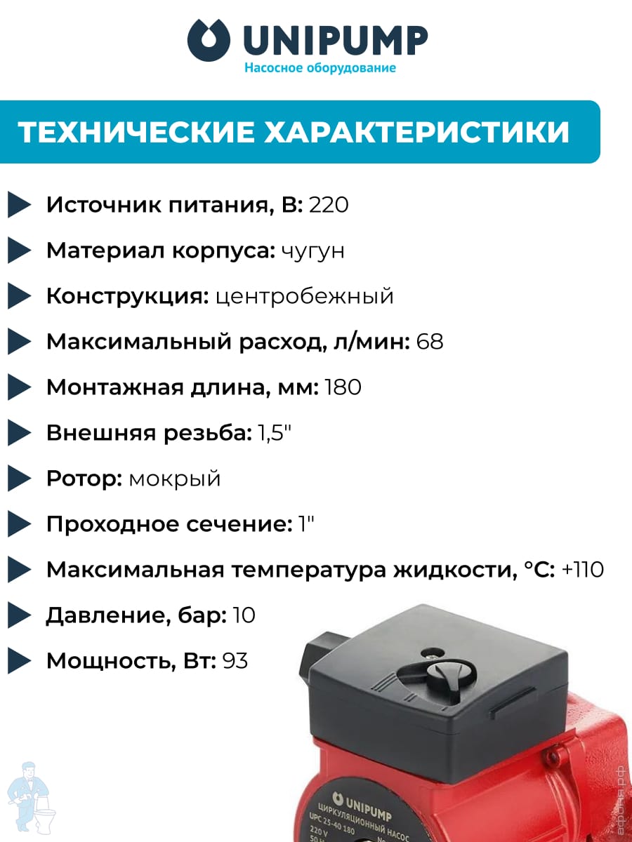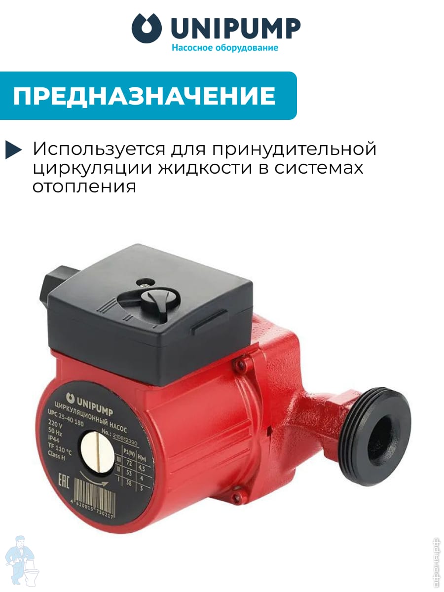 Насос циркуляционный UNIPUMP UPA 15-90 160 для повыш. давления, 120 Вт, напор 9м, 8,5 л/мин,без гаекКод: 206810