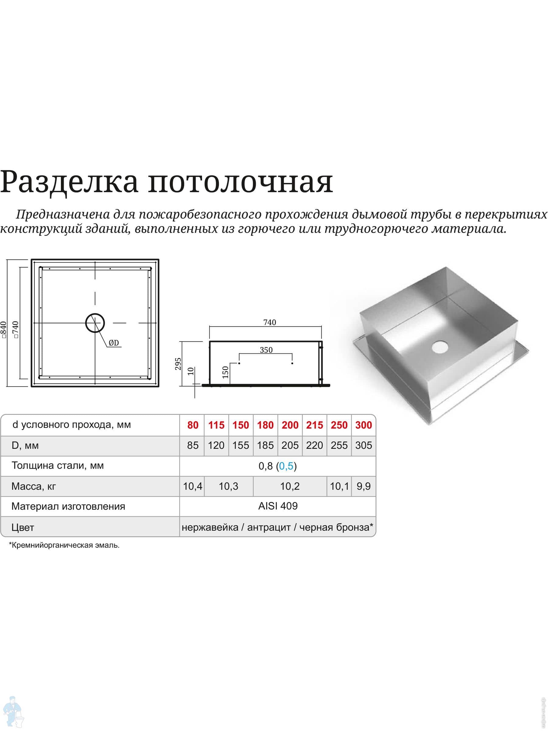 Проходки и разделки потолочные, крышные, воротники ТЕРМОФОР