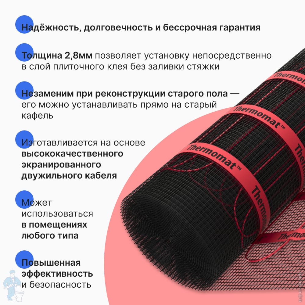 Теплые полы (электро) Площадь обогрева до 5,0 м2