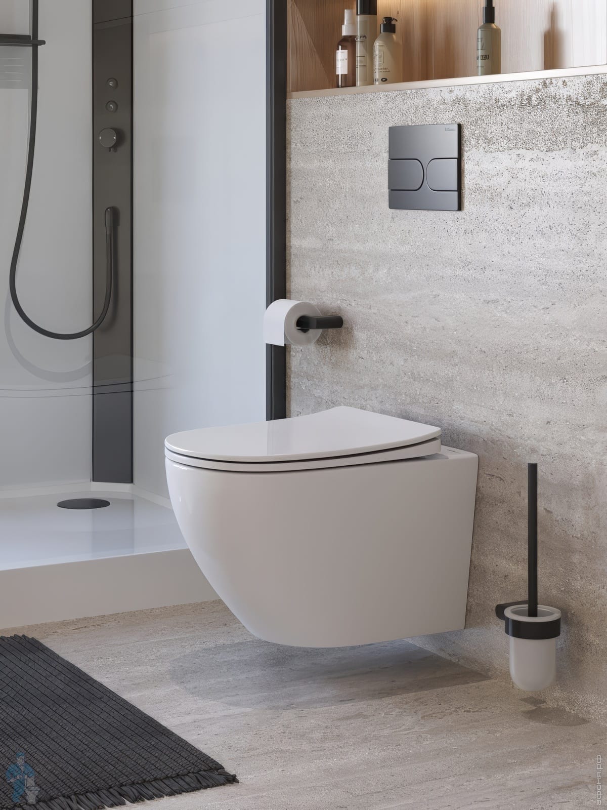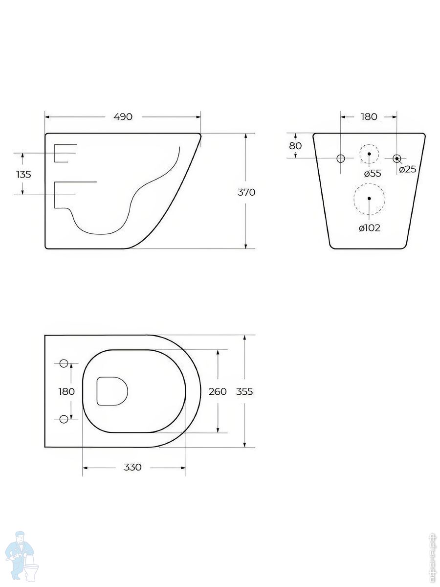 Унитаз подвесной BelBagno Sela 540х370х365 безободк.,с сиденьем,черный мат. BB3201CHR-MB+BB3201SC-MBКод: 320880