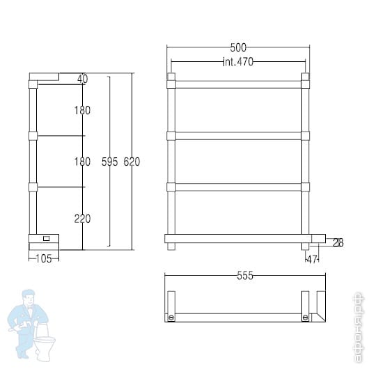 Полотенцесушитель электрический Margaroli Panorama 842-4 (620х555) шлифован.золото,100Вт,8424704BGNBКод: 225556