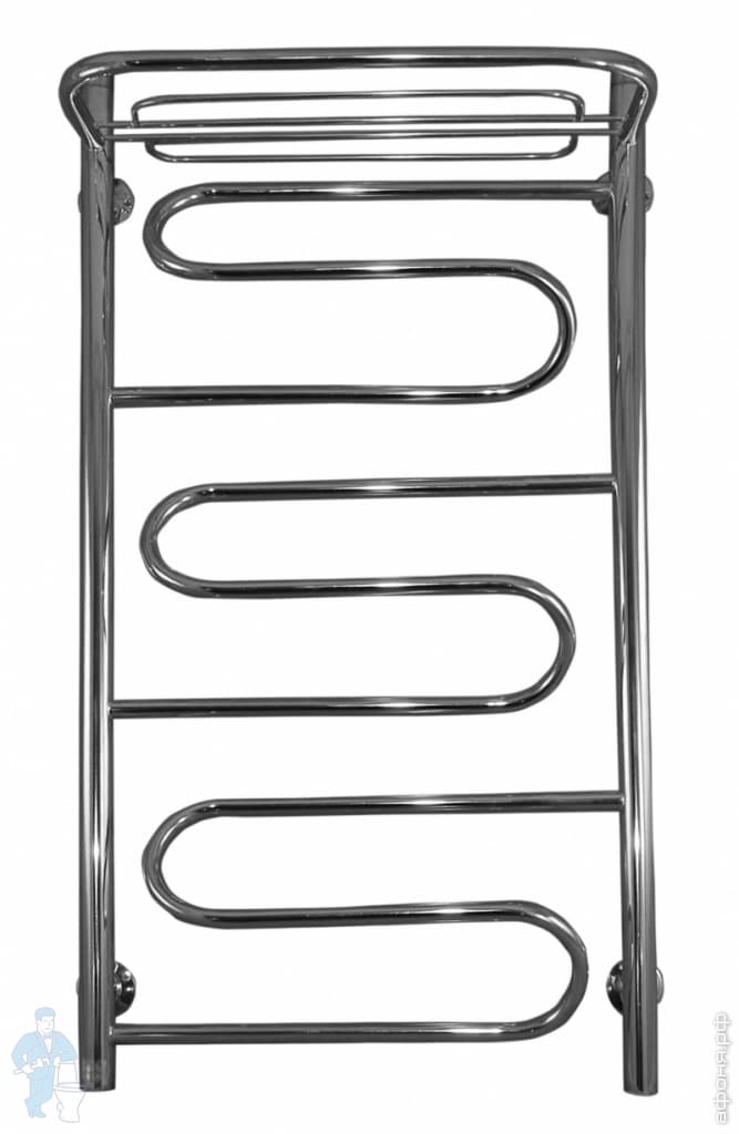 Полотенцесушитель Флагман "Лесенка" Волна-3 с полкой 500х1000 нерж.сталь, диаг./нижнее подкл. D-1/2"Код: 116262