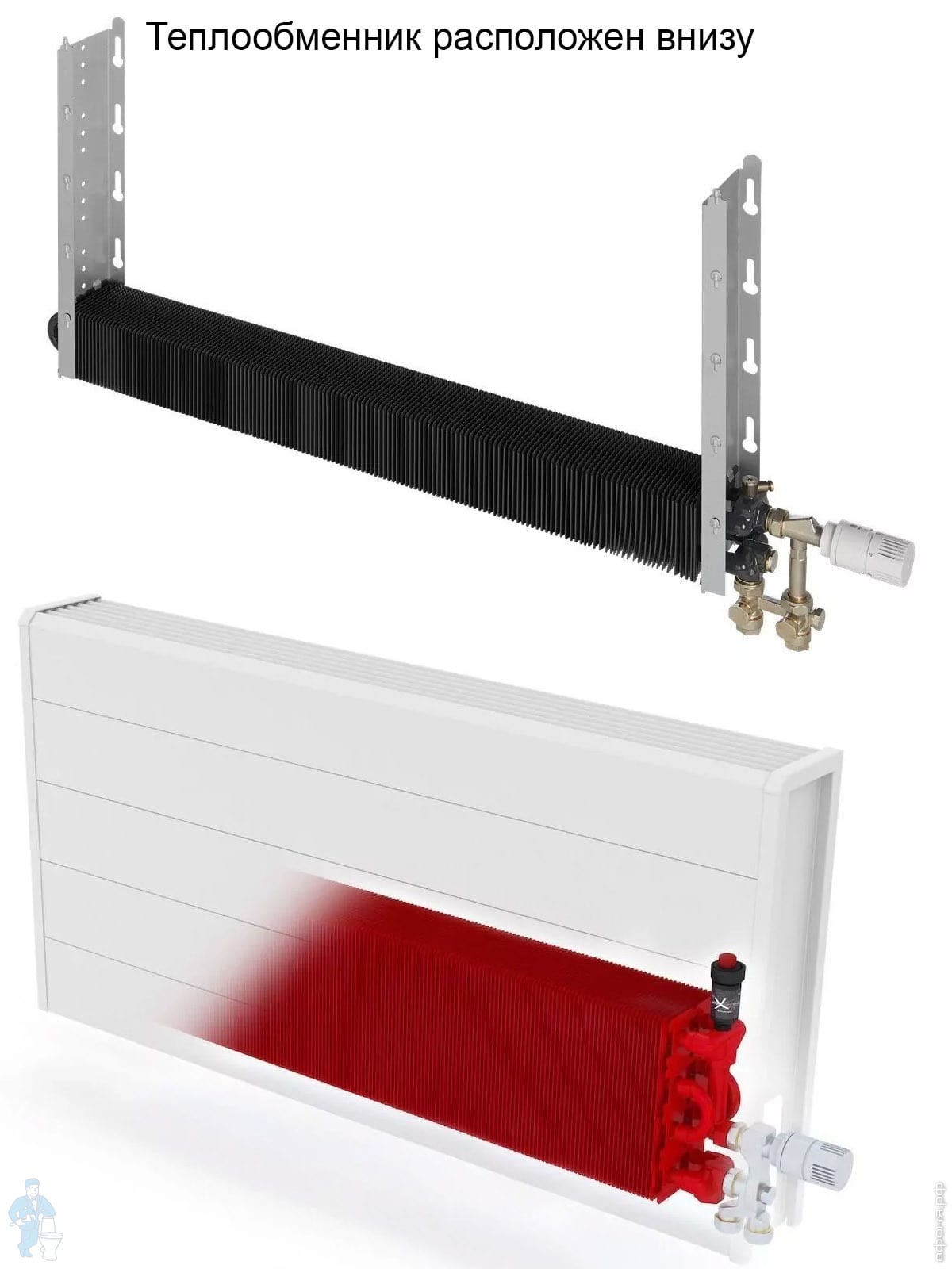 Одним из конкурентных преимуществ водяных конвекторов Jaga является медно-алюминиевый теплообменник, произведенный с применением технологии Low-H2O (мало воды). От традиционных батарей их отличают свойства: