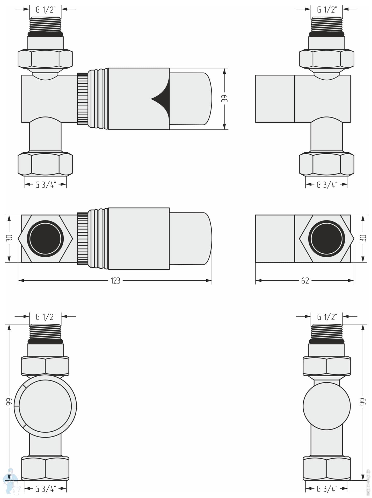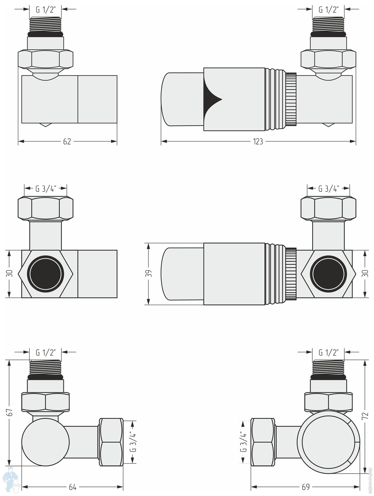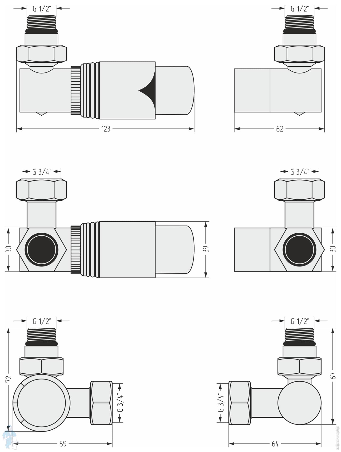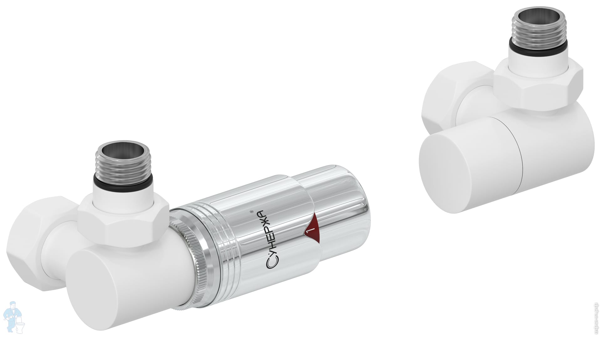 Автоматический терморегулятор 3D левый СУНЕРЖА белый матовый-белый 1/2"Нх3/4" нак.гайка 30-1421-6202Код: 285467
