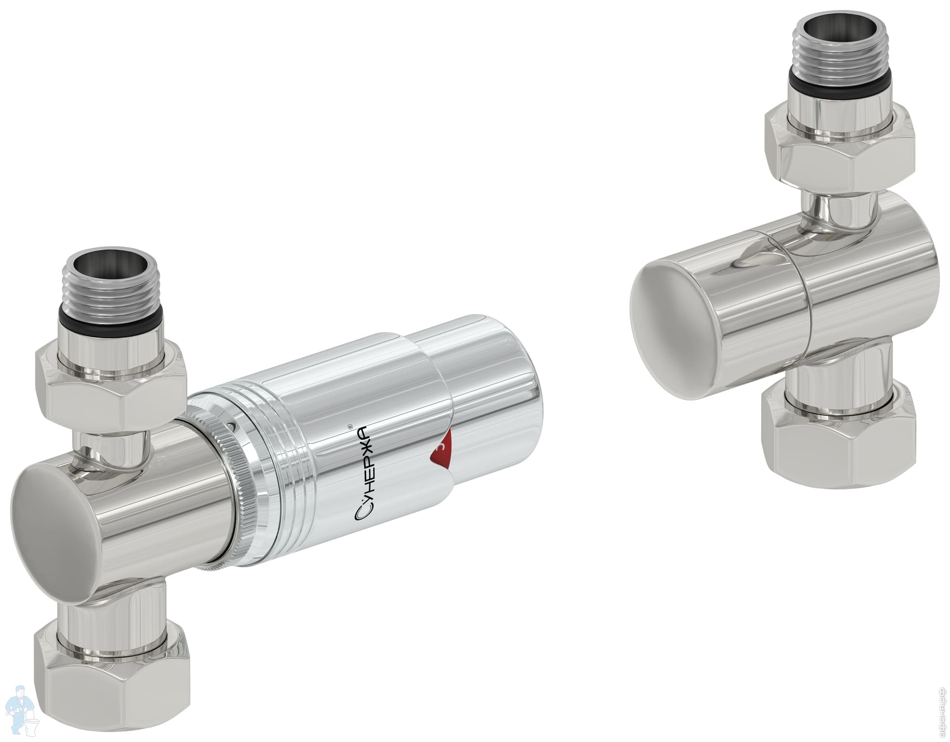 Автоматический терморегулятор 3D левый СУНЕРЖА белый матовый-сталь 1/2"Нх3/4" нак.гайка 30-1421-6205Код: 285400
