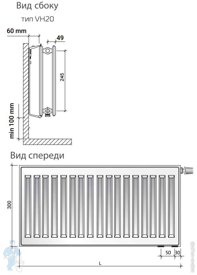 Радиаторы Royal Thermo VENTIL HYGIENE тип 20 с нижним подключением
