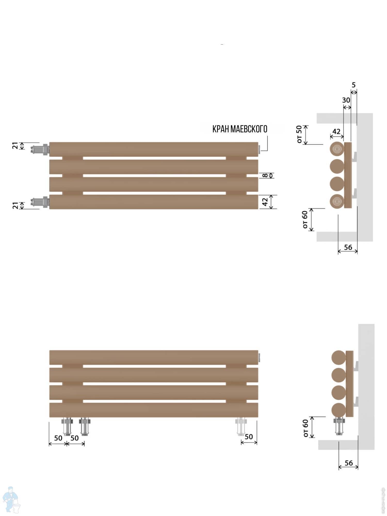 Радиатор стальной toHit from asthetik 42, 12 секций, 1250х592х77, 1821 Вт, горизонтальный, трубчатыйКод: 346435