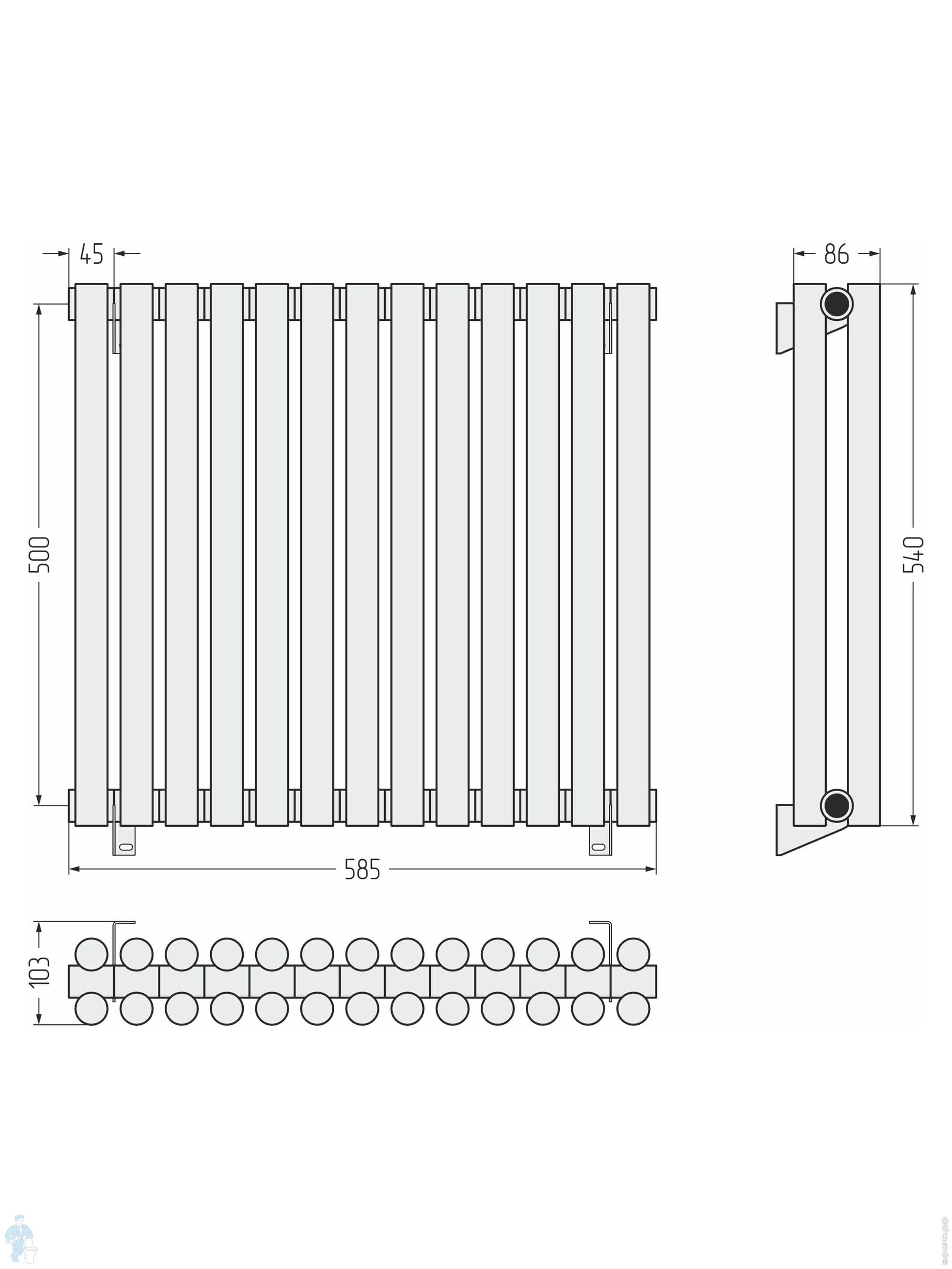 СУНЕРЖА Эстет-11 Дизайн радиатор 500х315 (7 секц) нерж. сталь, EU50 левое/правое, 3/4", 00-0312-5007Код: 184511