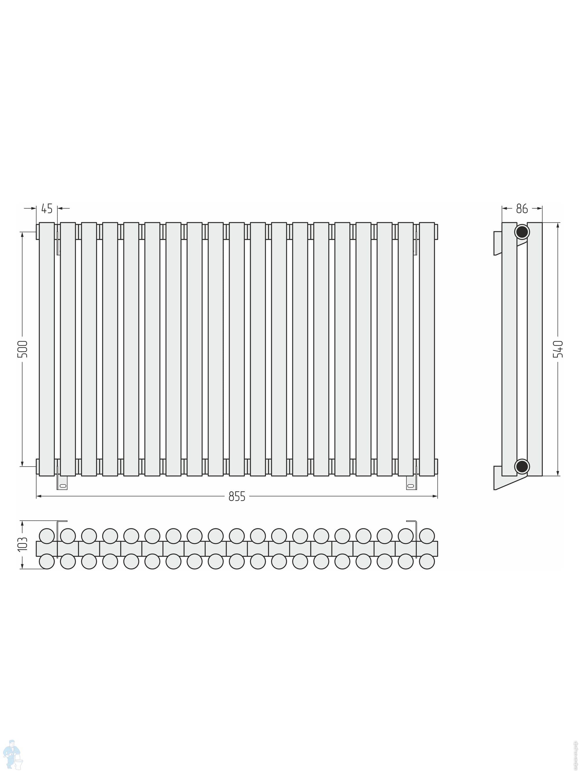 СУНЕРЖА Эстет-11 Дизайн радиатор 500х405 (9 секц) нерж. сталь, EU50 левое/правое, 3/4", 00-0312-5009Код: 184513