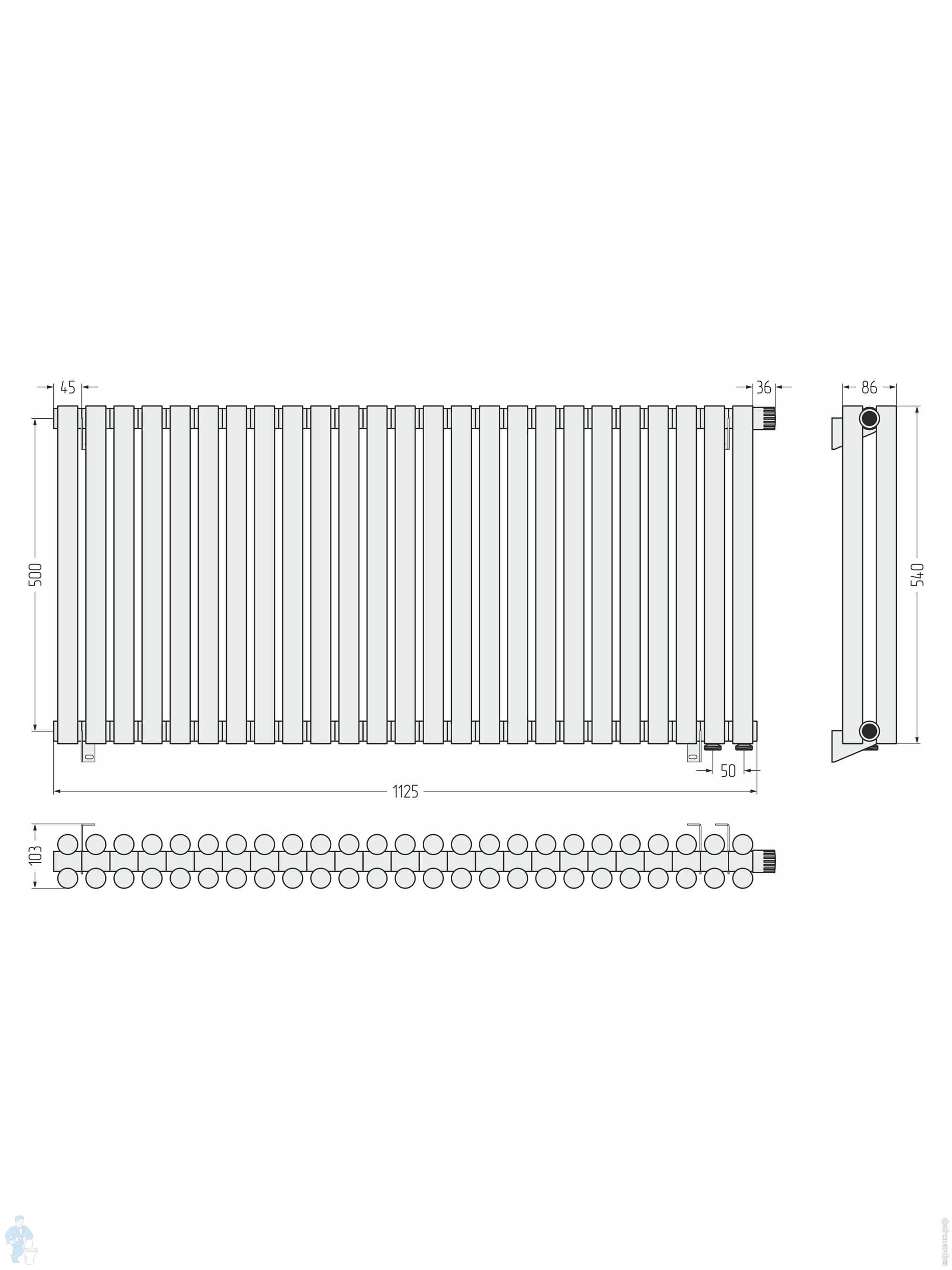 СУНЕРЖА Эстет-11 Дизайн радиатор 500х1125 (25 секц) нерж.сталь, EU50 левое/правое,3/4", 00-0312-5025Код: 184529