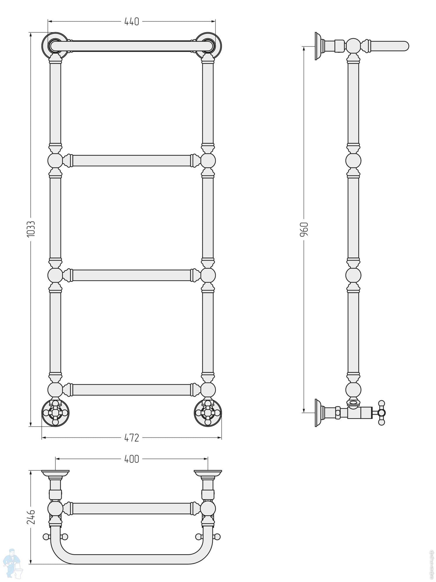 СУНЕРЖА Ренессанс 1304 Полотенцесушитель 960х400 состаренная бронза, нижнее подкл. 3/4",05-0280-9640Код: 183445