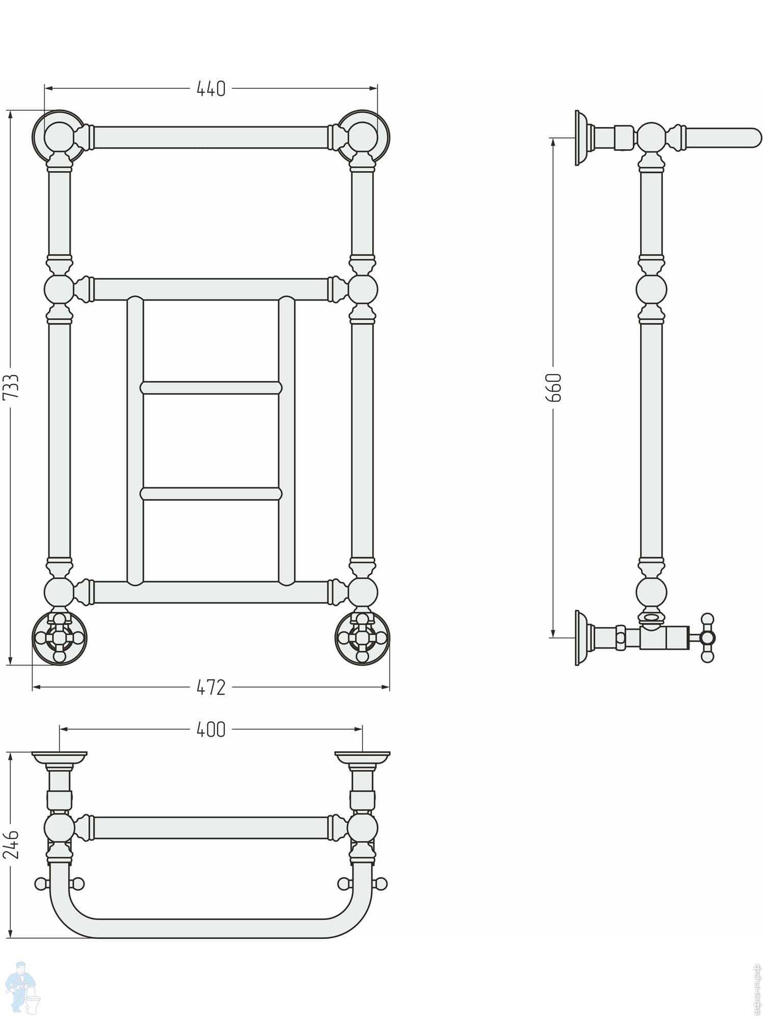 СУНЕРЖА Ренессанс 1304 Полотенцесушитель 660х400 состаренная бронза, нижнее подкл. 3/4" 05-0280-6640Код: 175031
