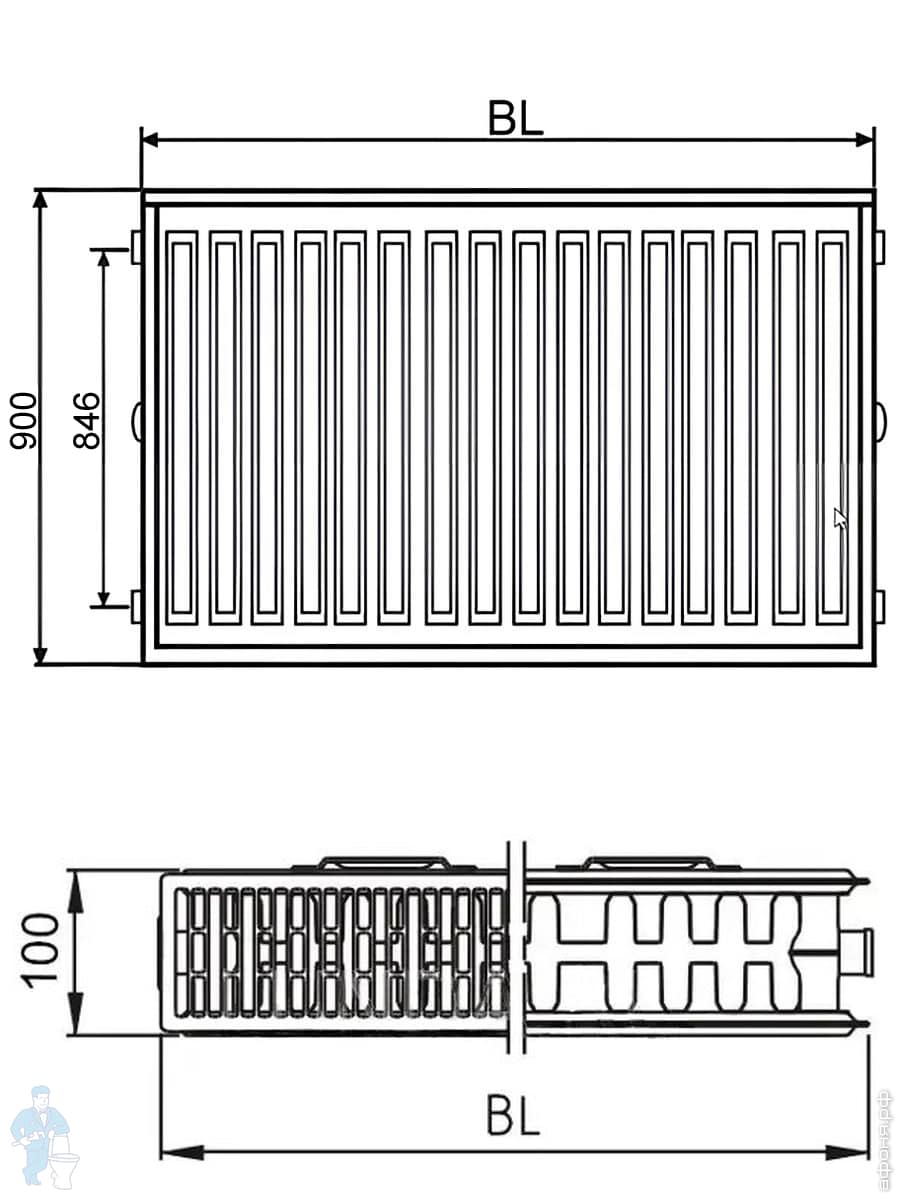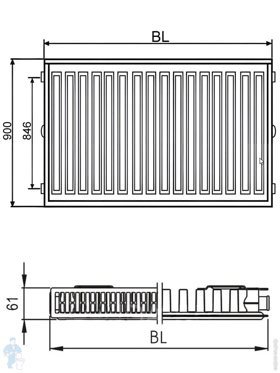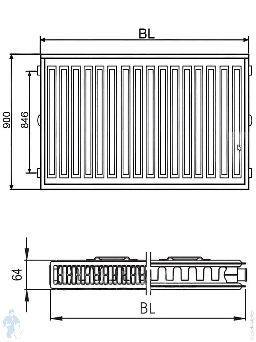 Радиатор стальной KERMI Тип 22 ВШГ 900х400х100 боковое/диагонал. подключение 1/2", 1266 Вт FKO220904Код: 21781