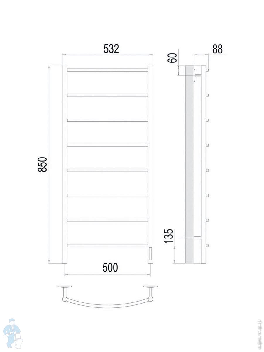 Полотенцесушитель TERMINUS Классик П8 (ШВ 532х850) электрический quick touch, Ral 9003 белый матовыйКод: 306513