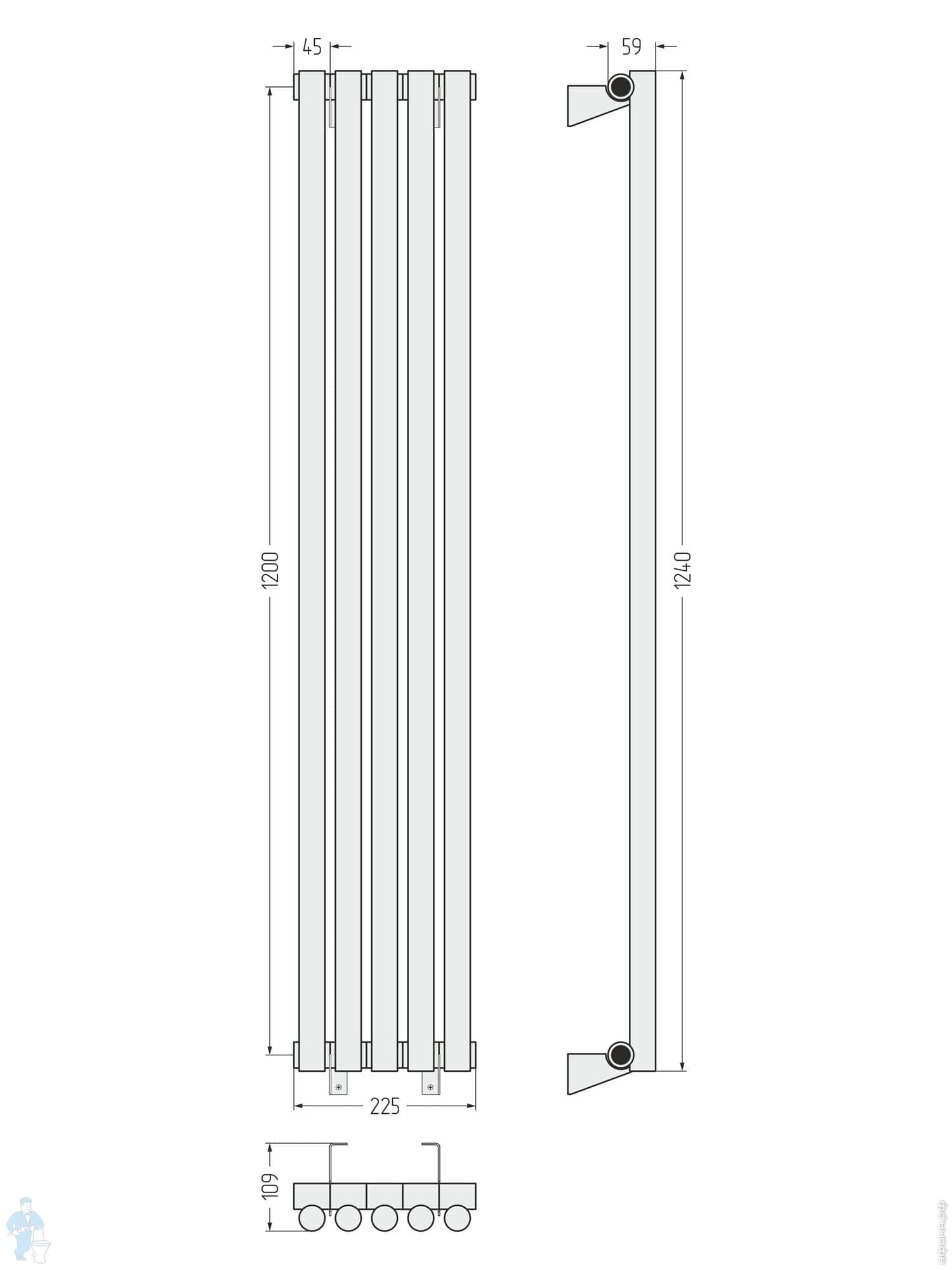 СУНЕРЖА Эстет-1 Дизайн радиатор 1200х135 (3 секц) нерж. сталь, EU50 левое подкл., 3/4", 00-0310-1203Код: 183844