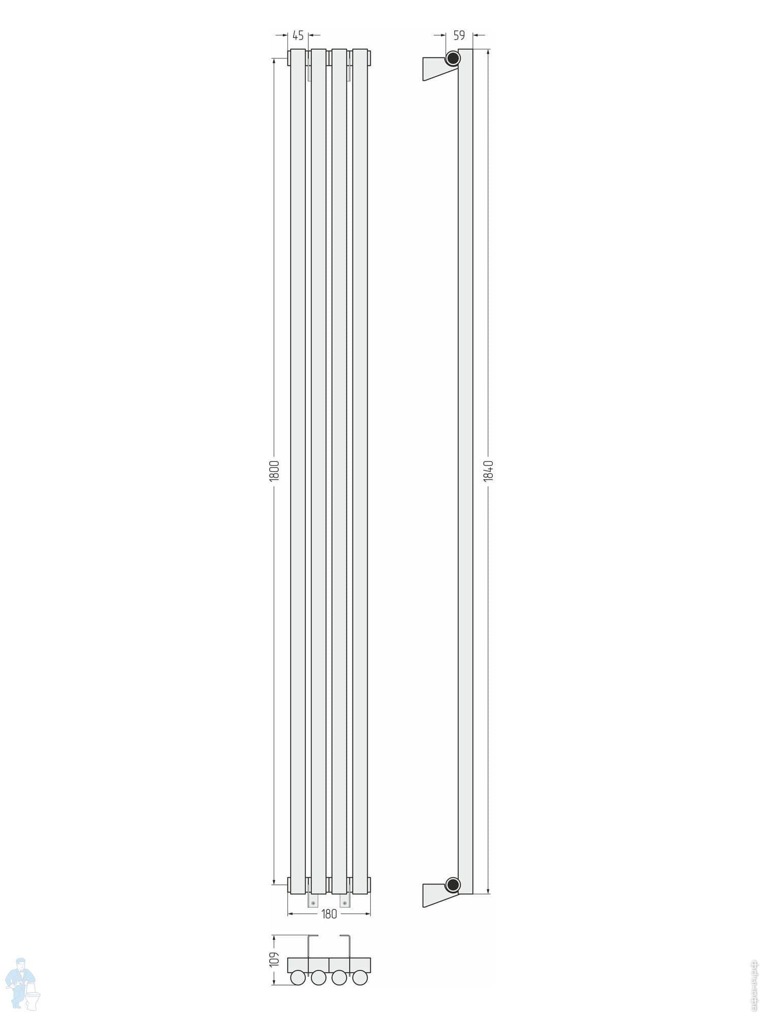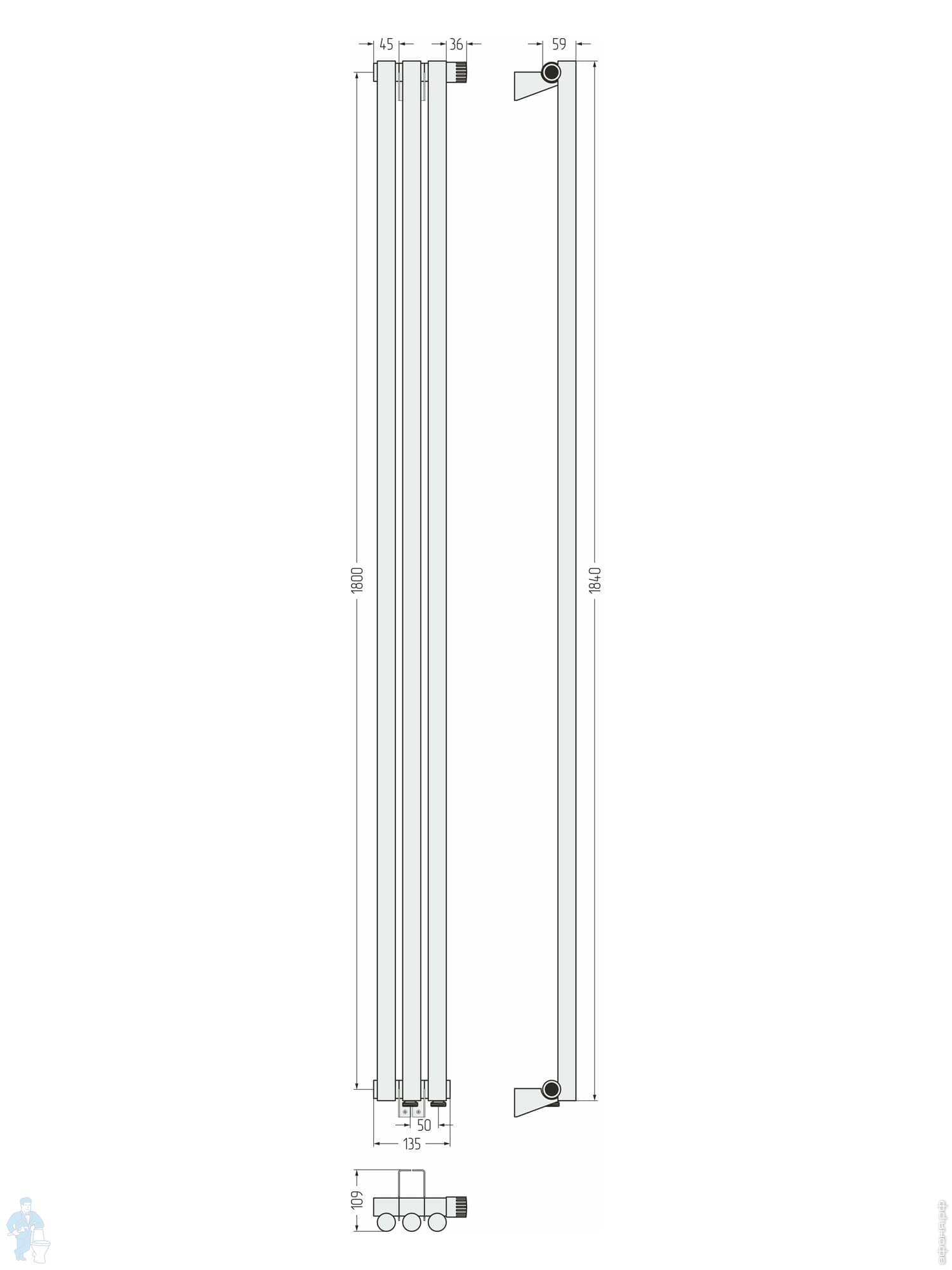 СУНЕРЖА Эстет-1 Дизайн радиатор 1800х135 (3 секц) нерж. сталь, EU50 левое подкл., 3/4", 00-0310-1803Код: 183847