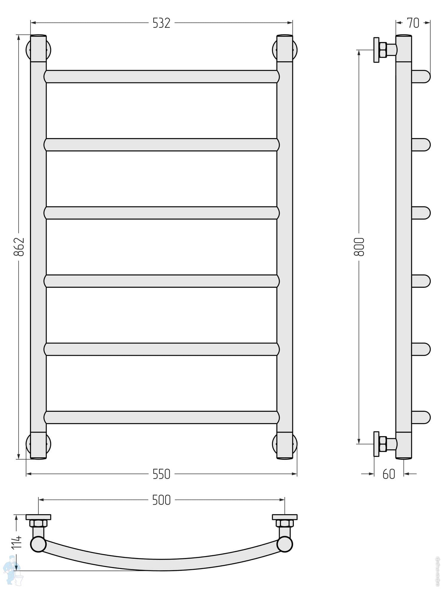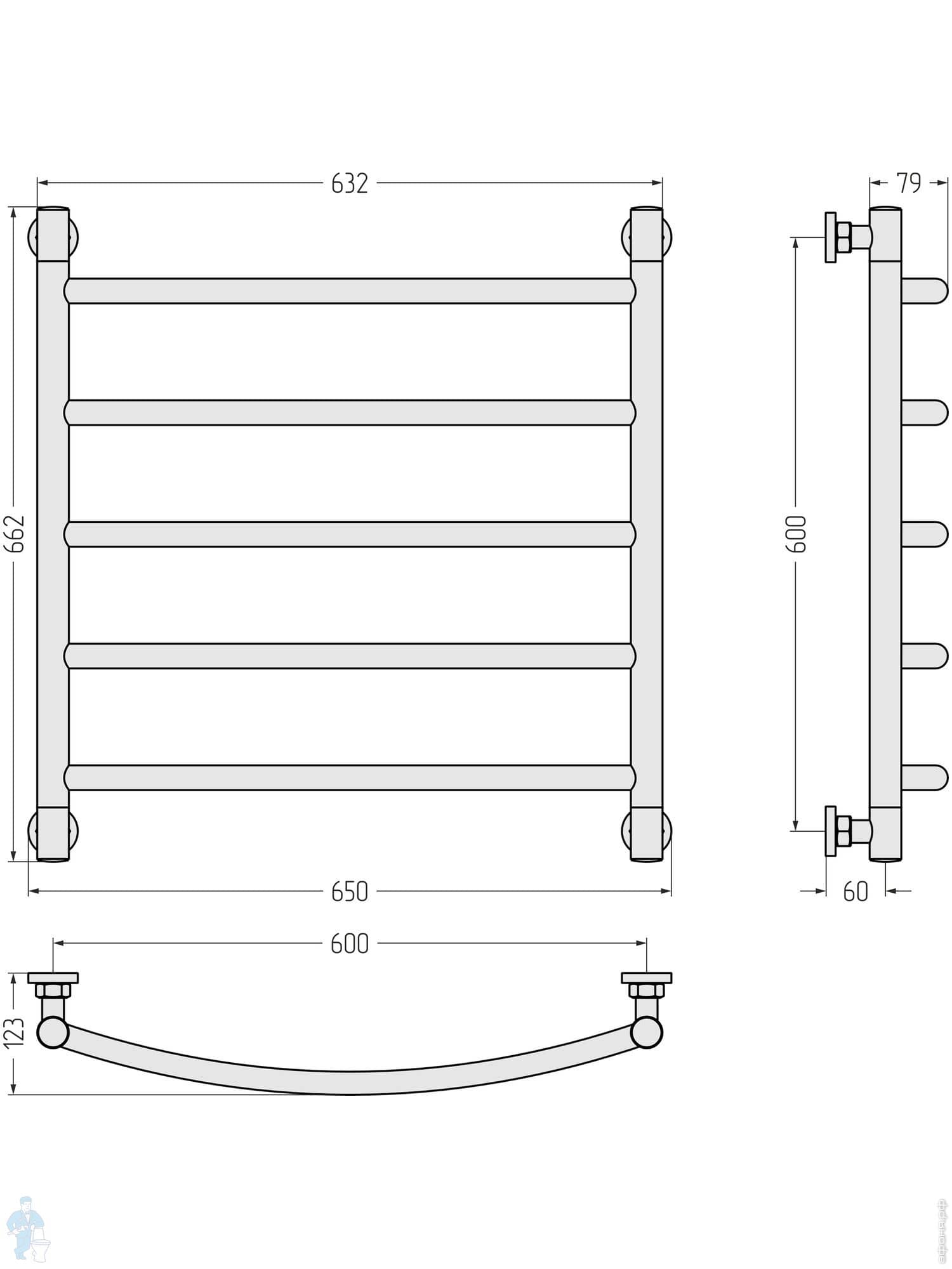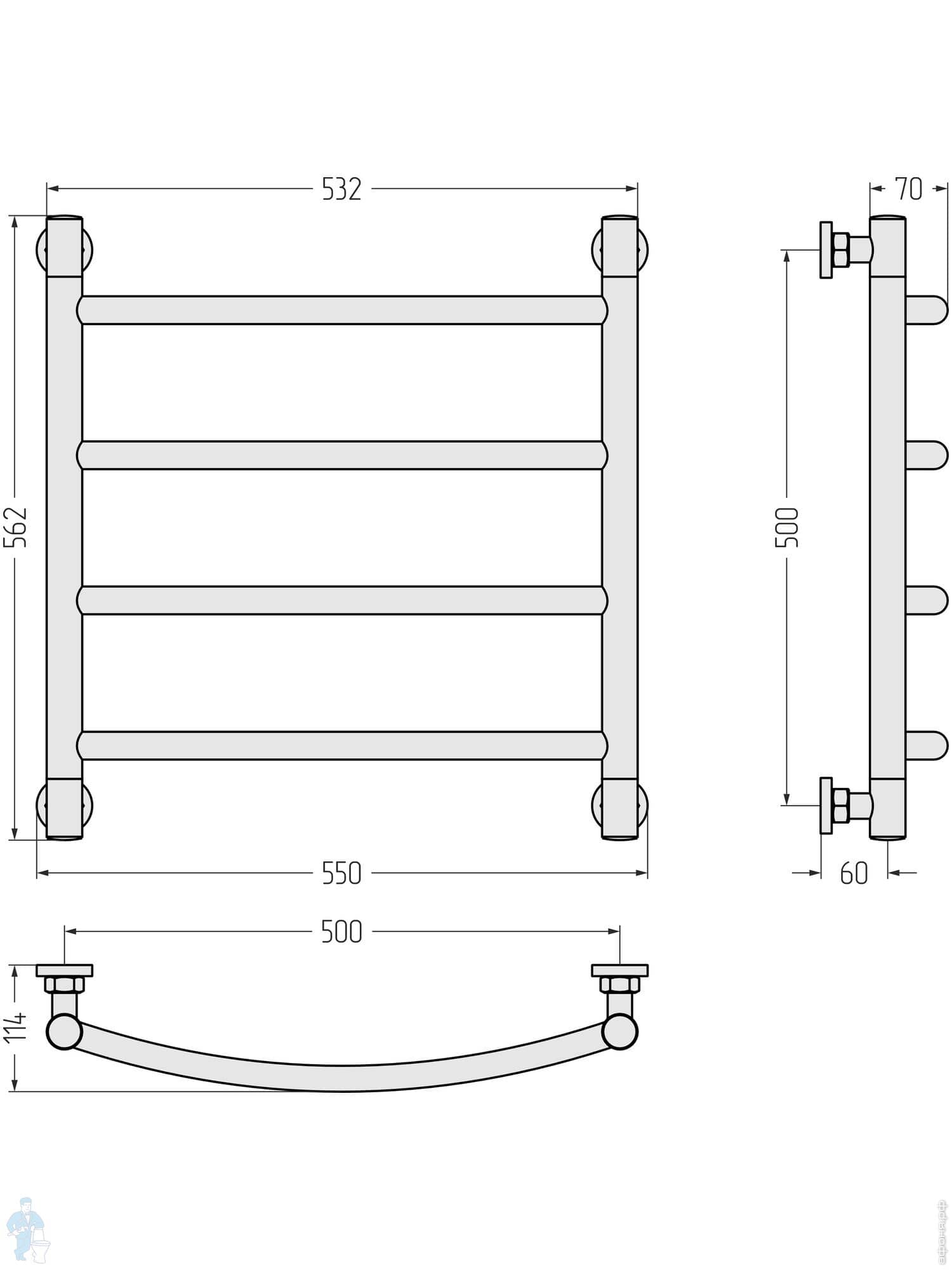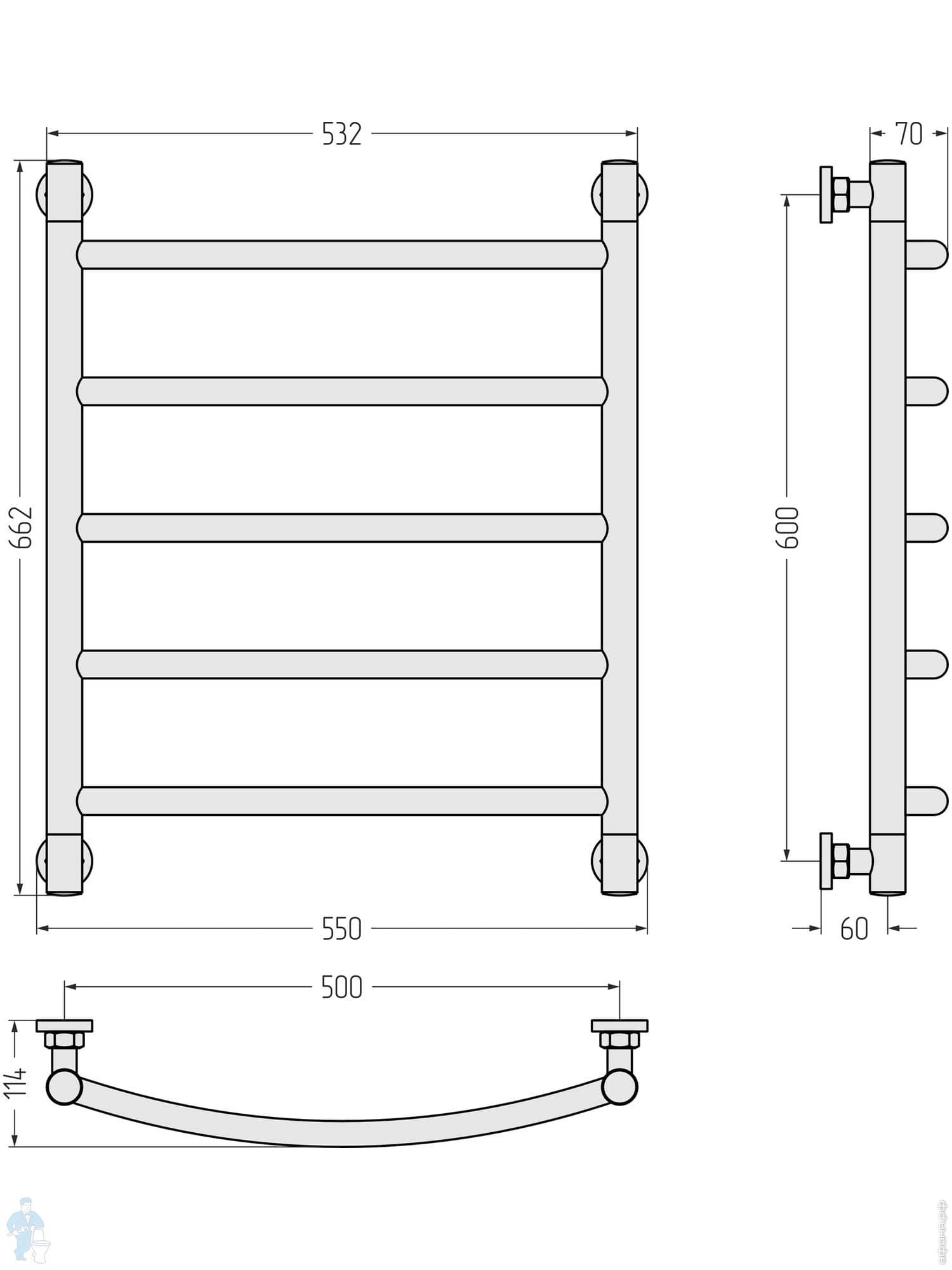 СУНЕРЖА Галант+ Полотенцесушитель 600х500 (5 ступ.) белый матовый, универс. подкл. 3/4" 30-0200-6050Код: 361807