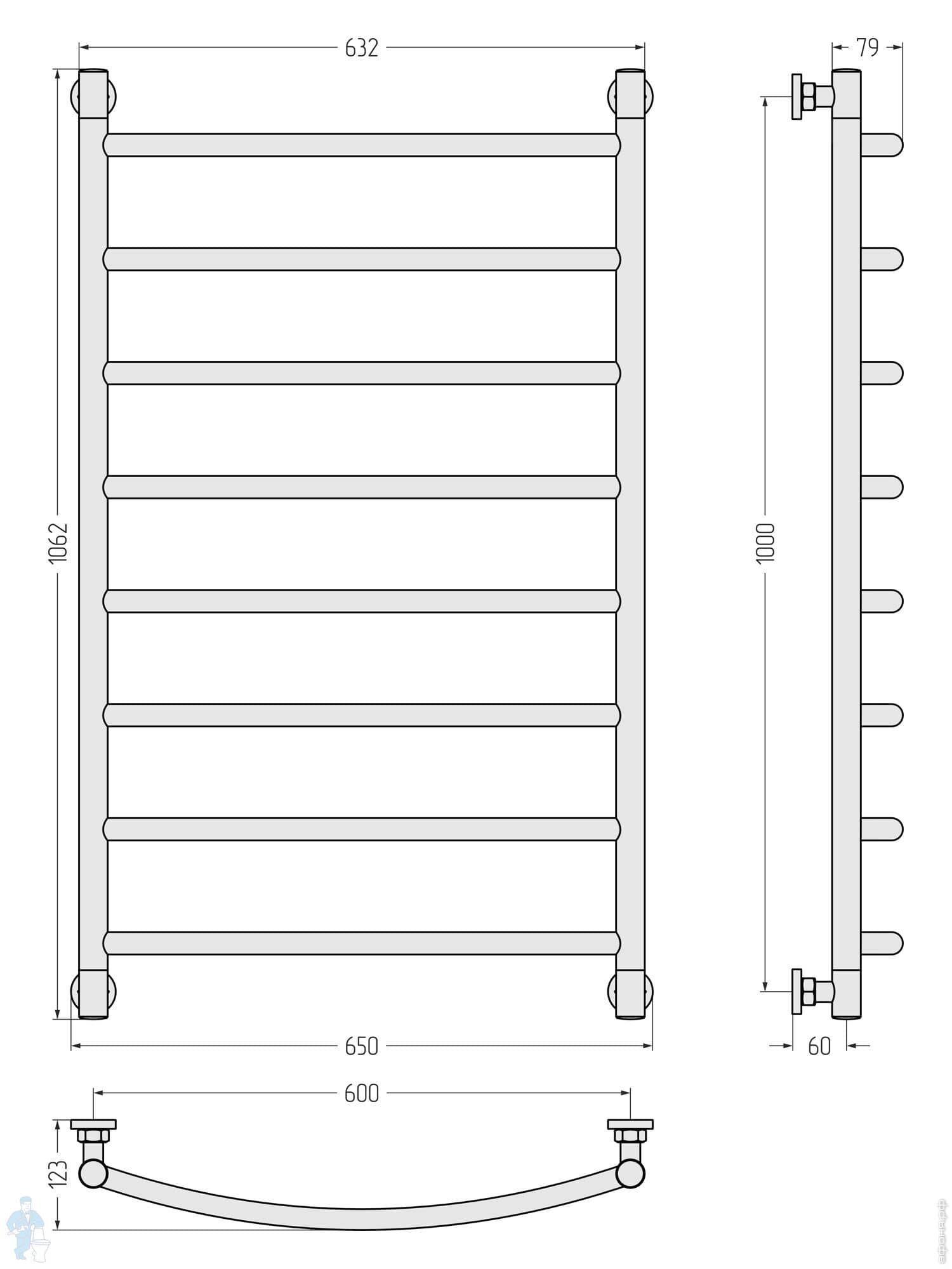 СУНЕРЖА Галант+ Полотенцесушитель 1000х600 (8 ступ.) белый матовый, универс.подкл. 3/4" 30-0200-1060Код: 225802