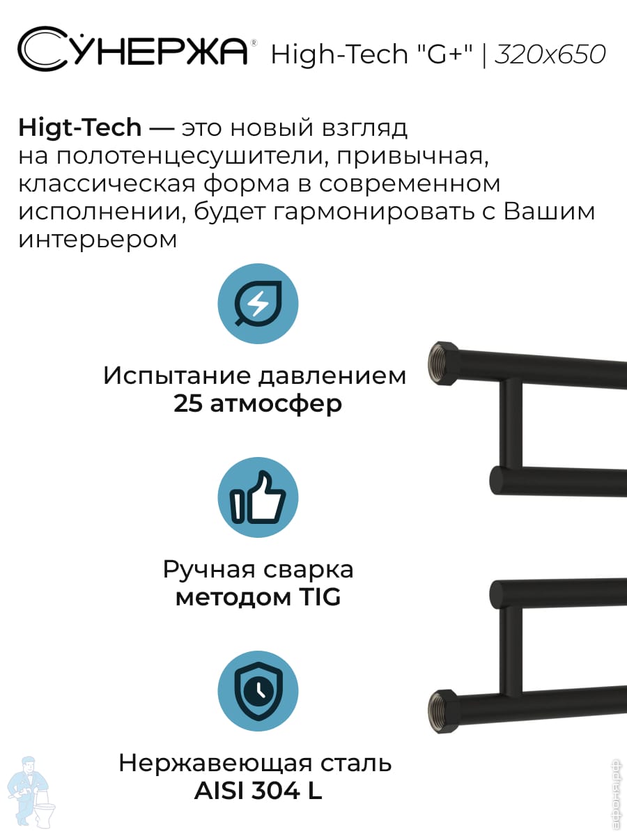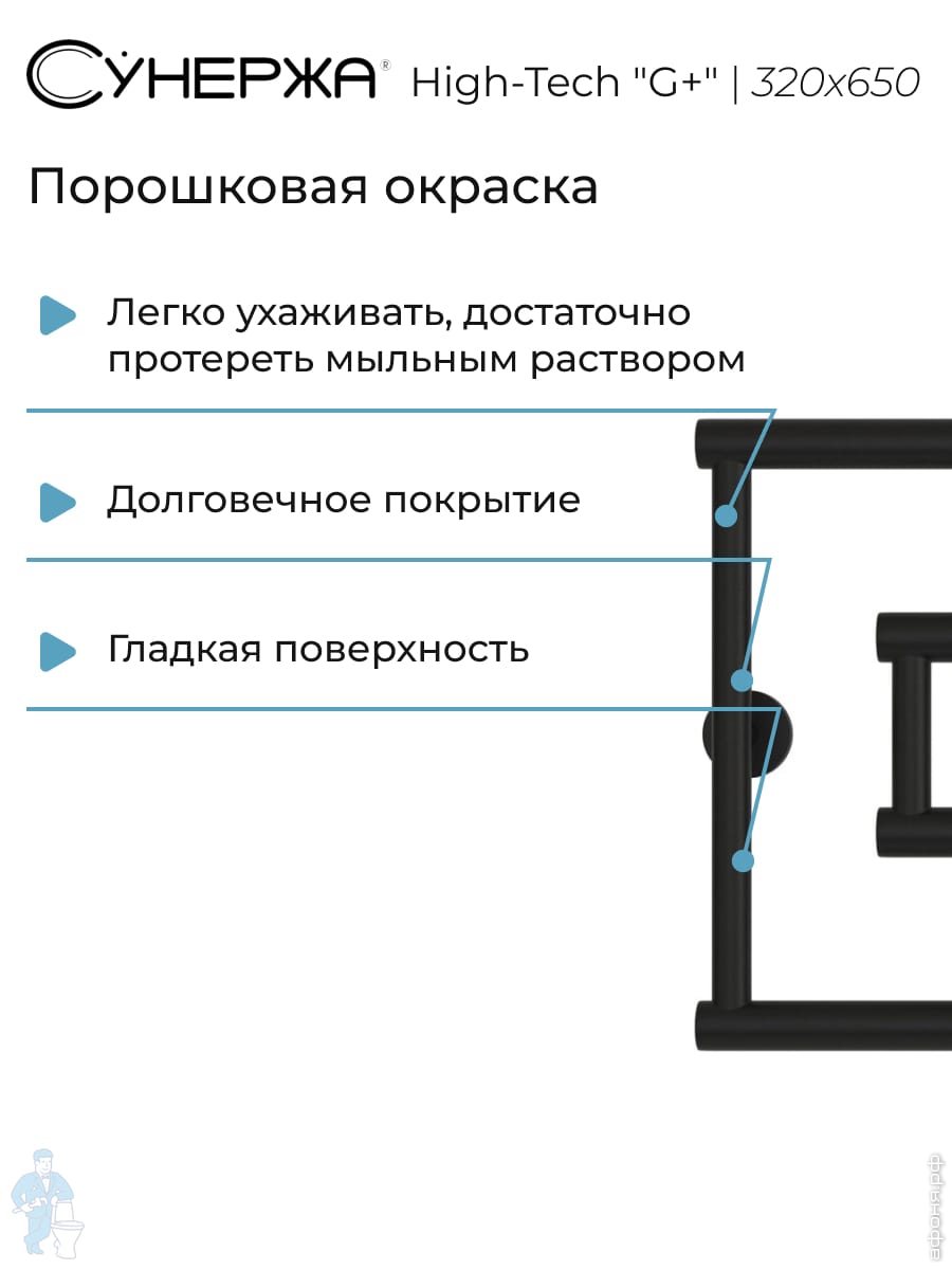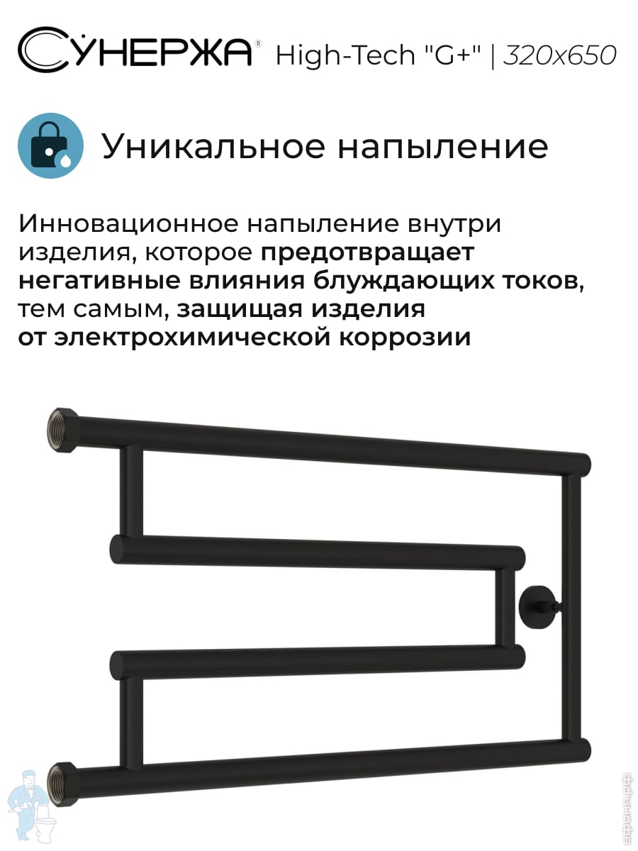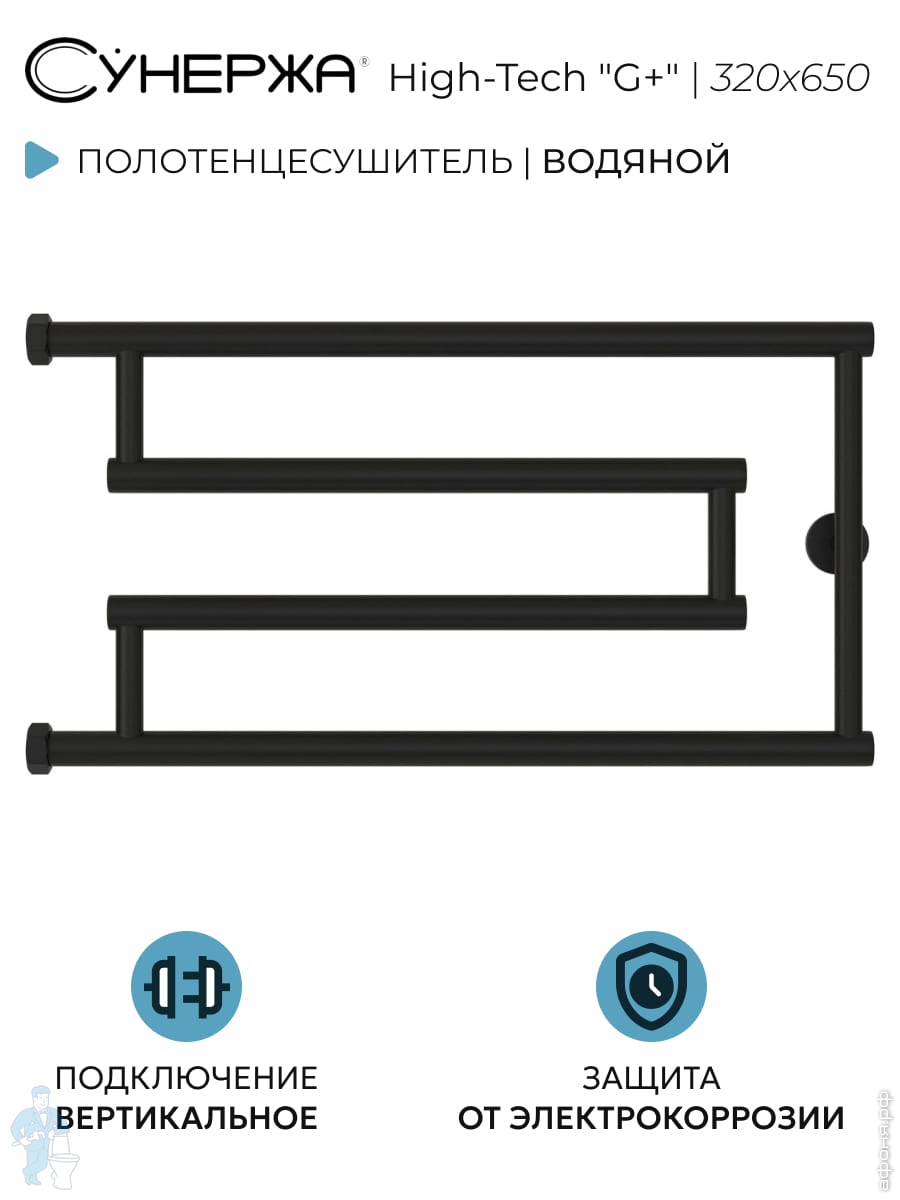 СУНЕРЖА High-Tech model "G+" Полотенцесушитель 320x650, верт.подкл., темный титан муар, 15-4051-3265Код: 356535