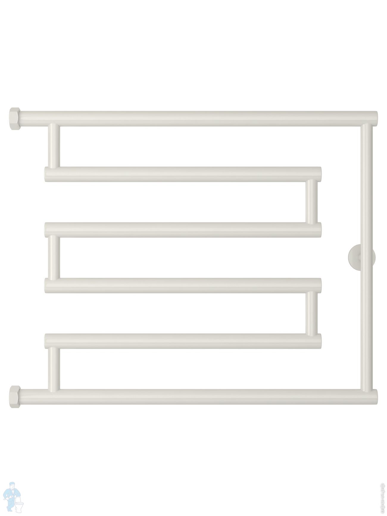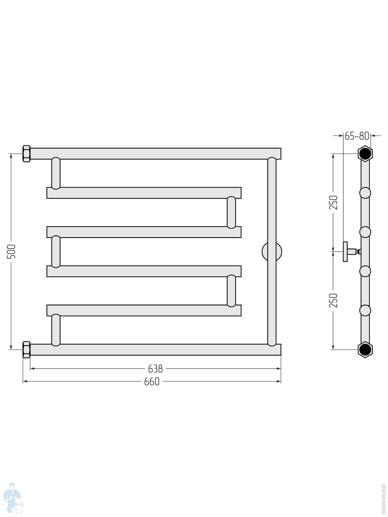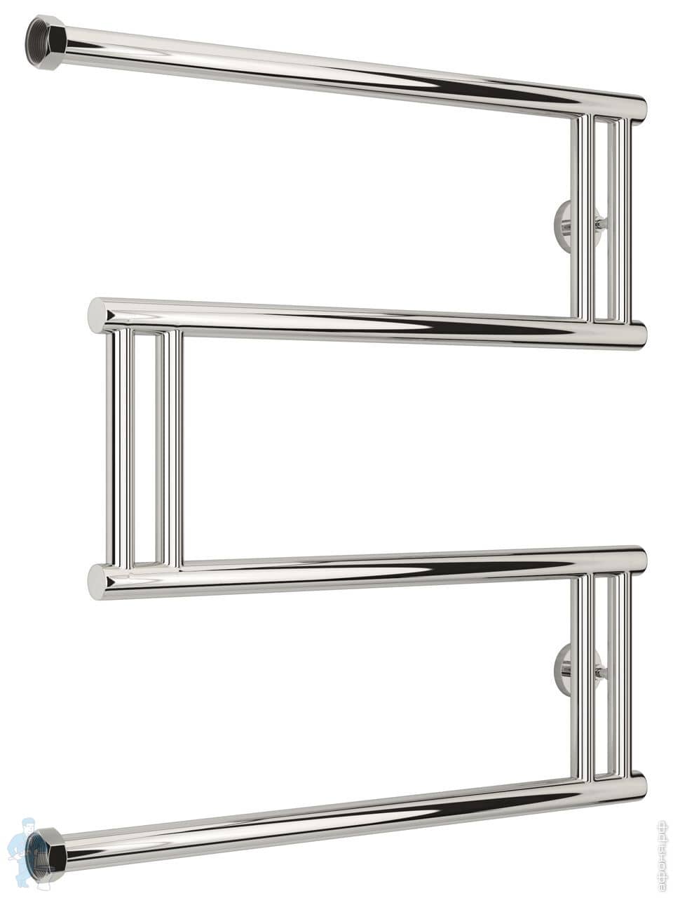 СУНЕРЖА High-Tech model "L+" Полотенцесушитель 500х650 нержавеющая сталь, верт. подключение гайка 1"Код: 161220