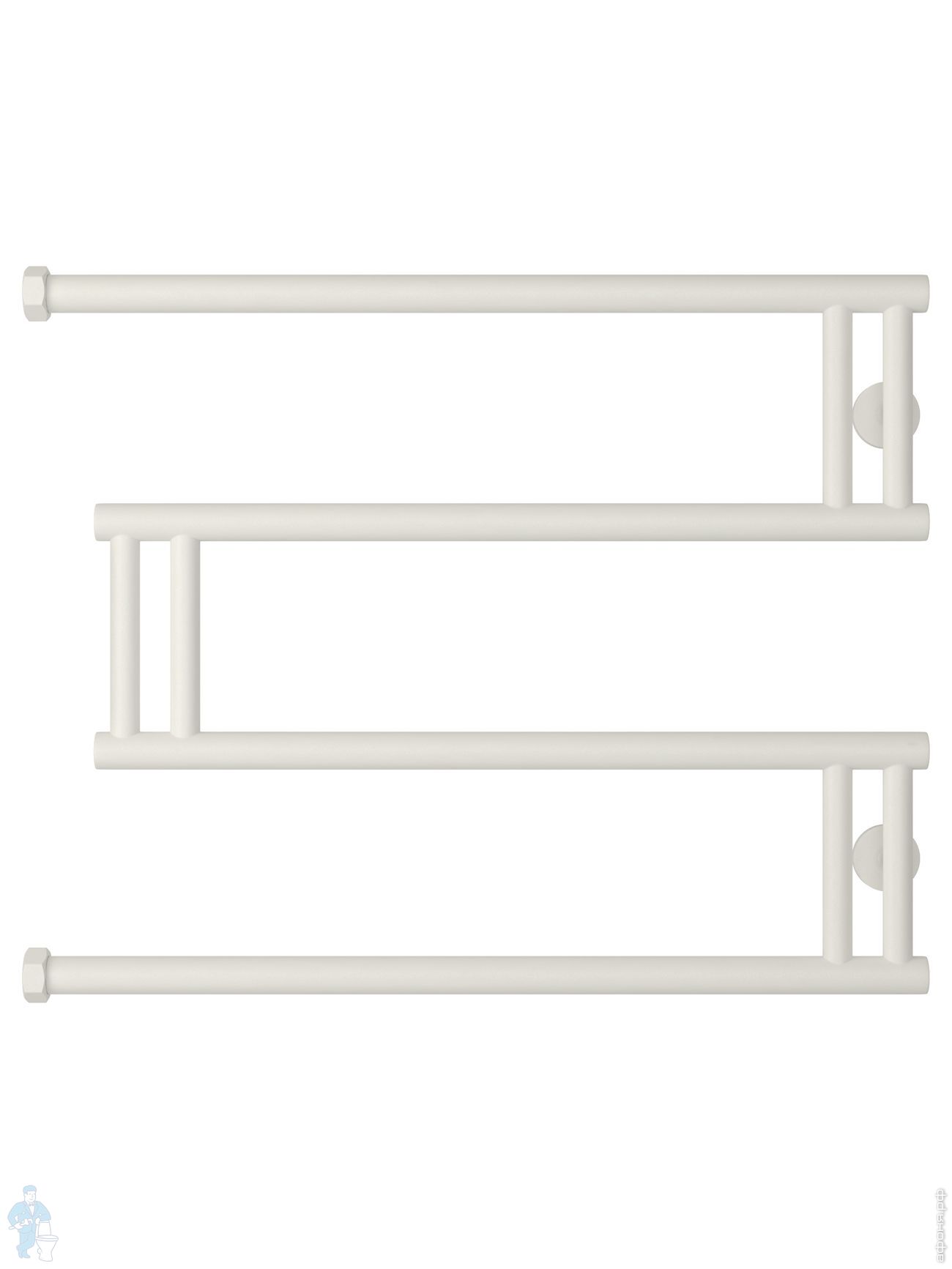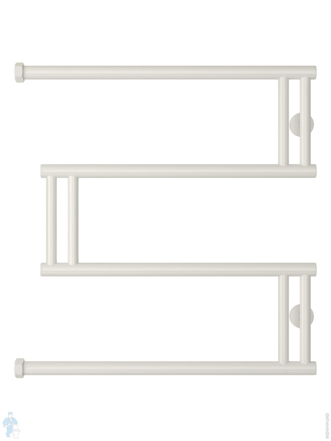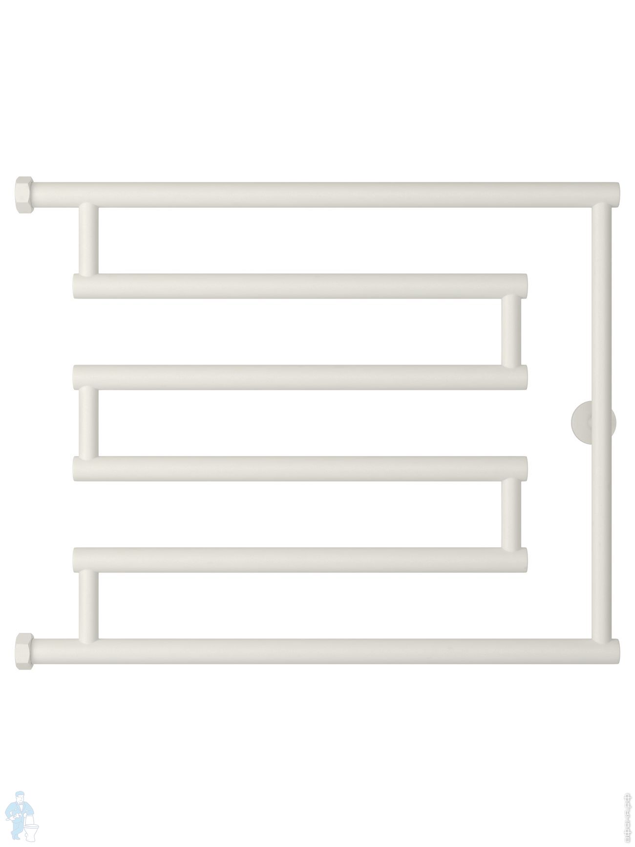 СУНЕРЖА High-Tech model "L+" Полотенцесушитель 500х650 нержавеющая сталь, верт. подключение гайка 1"Код: 161220