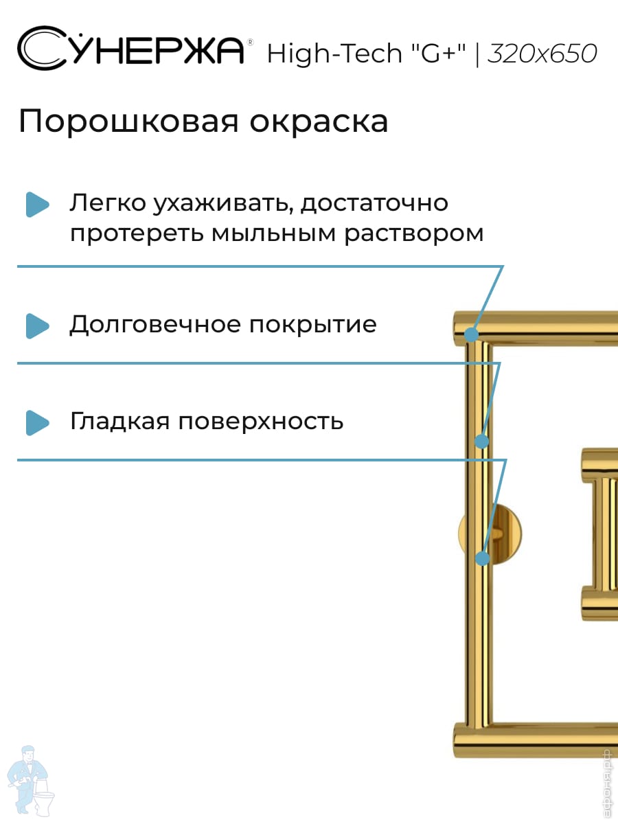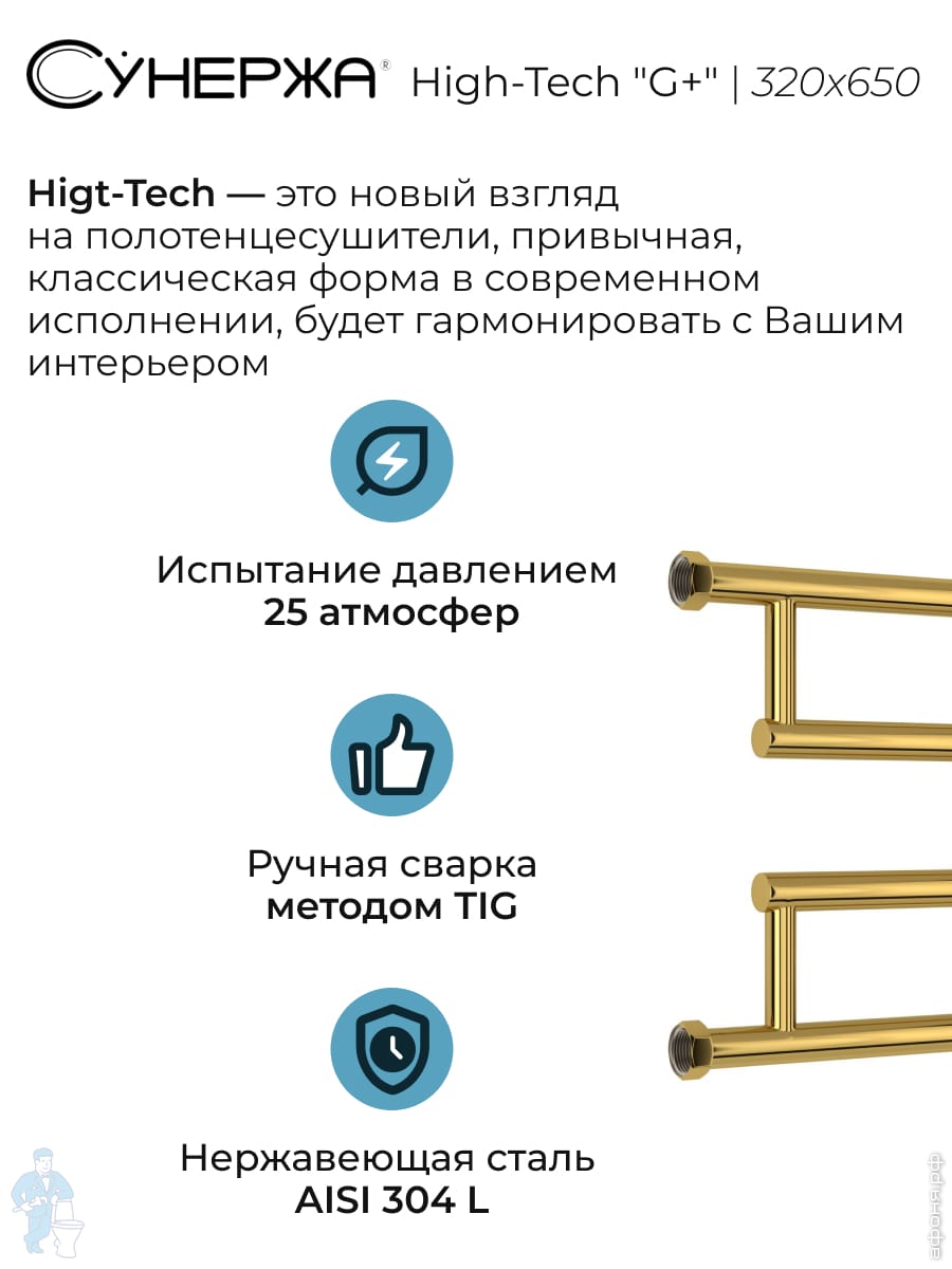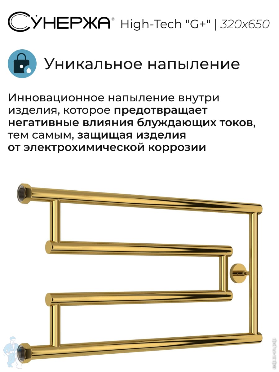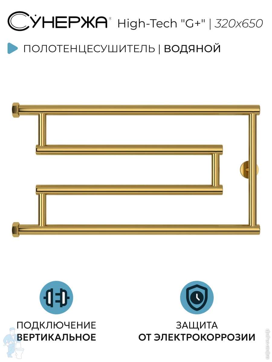 СУНЕРЖА High-Tech model "G+" Полотенцесушитель 320x650, верт.подключение, золотой шелк, 32-4051-3265Код: 356529