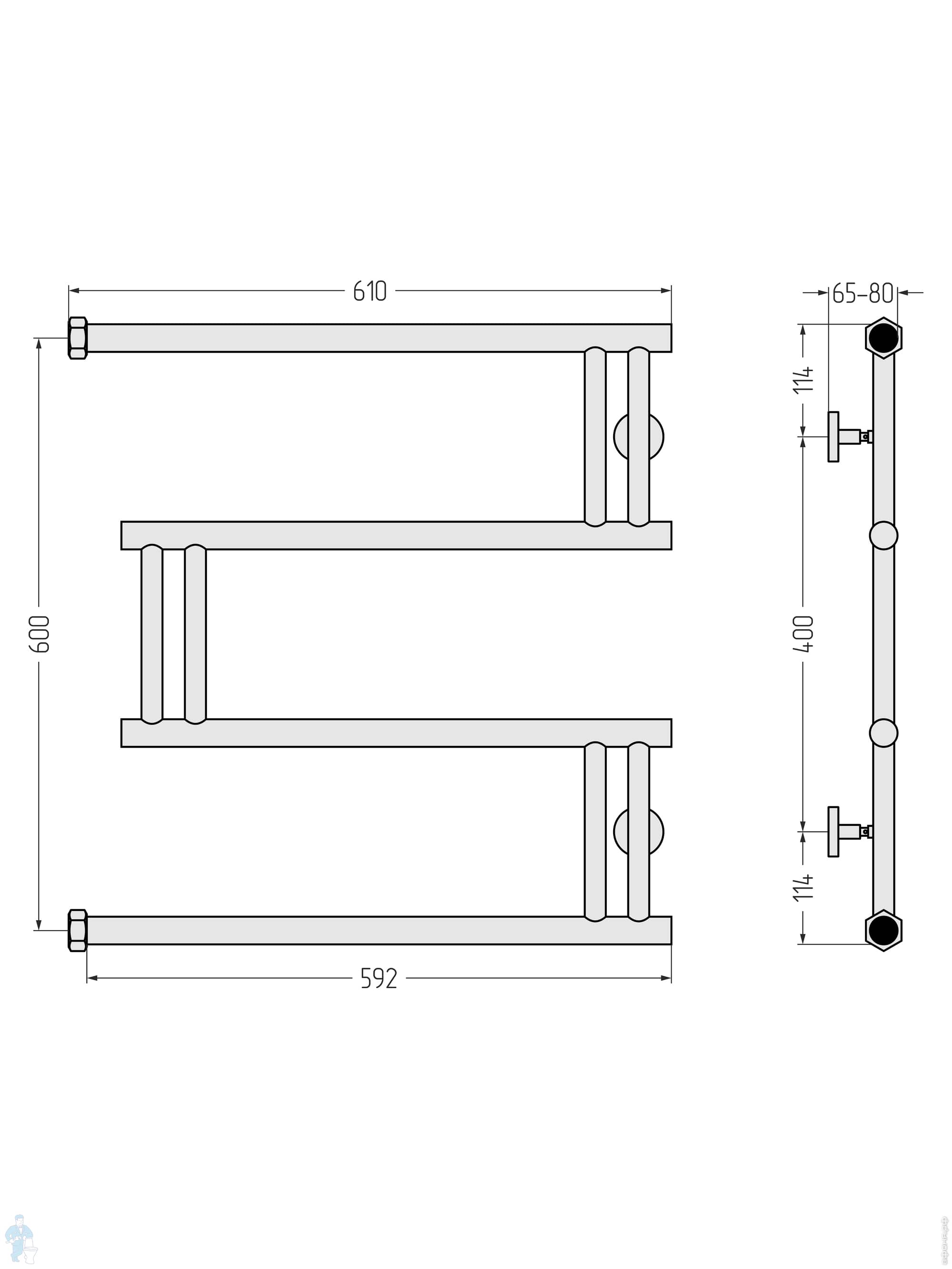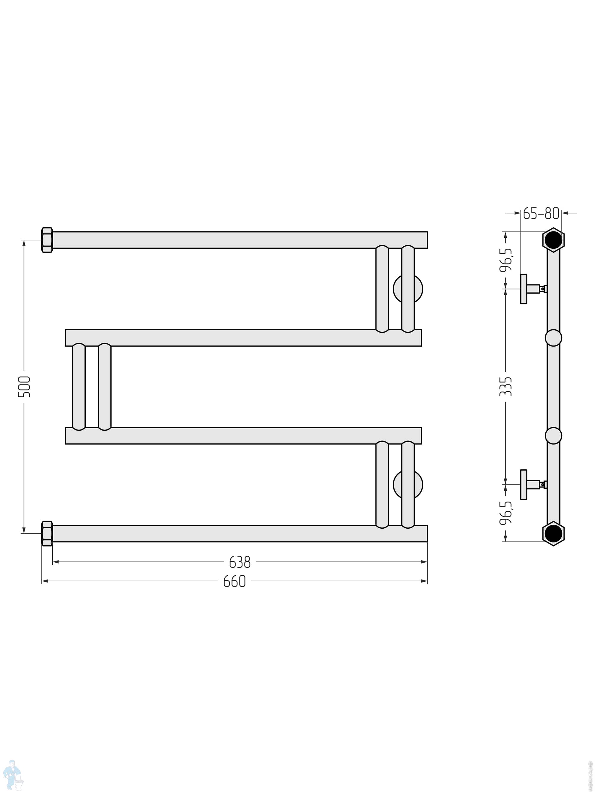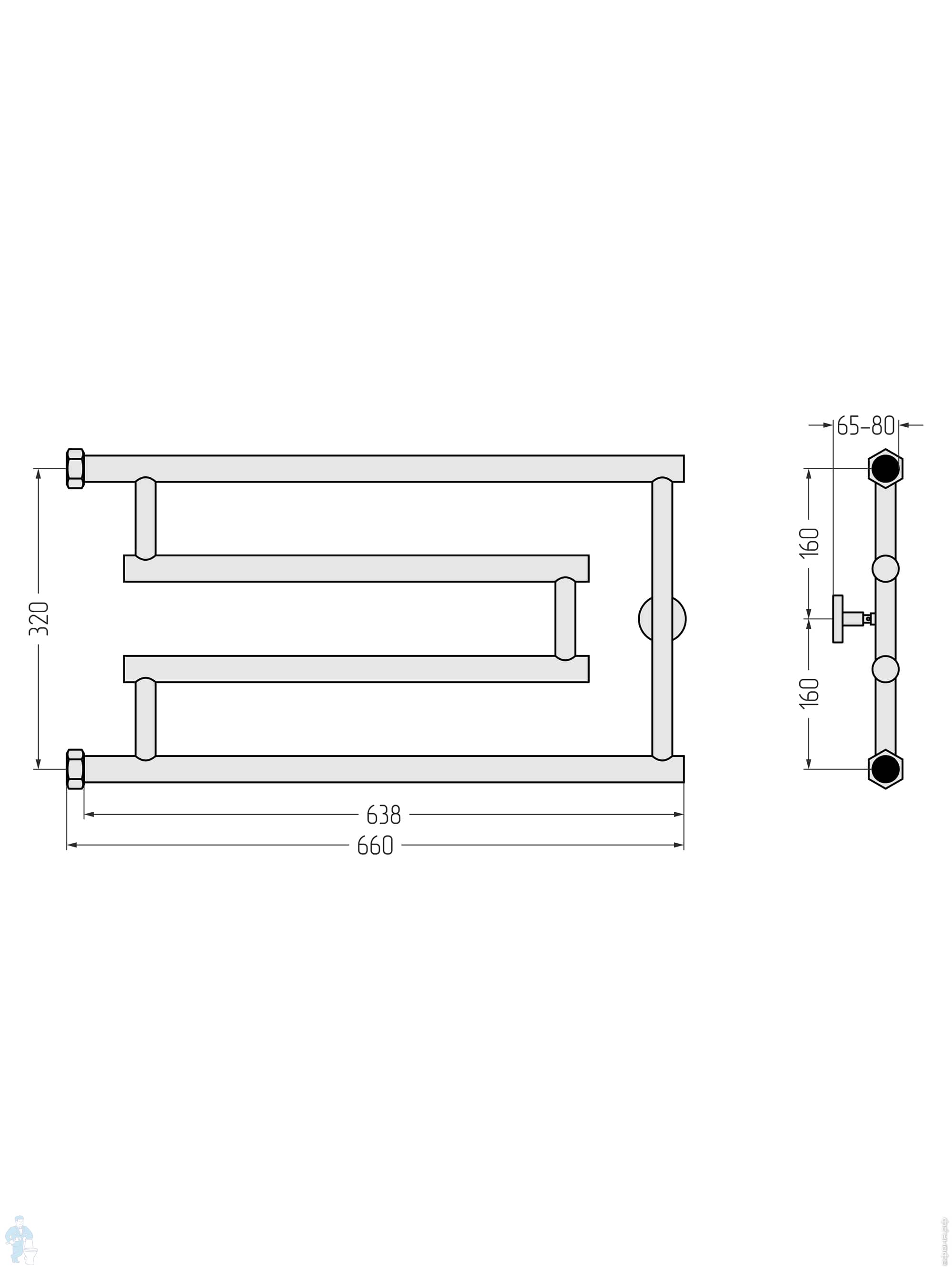 СУНЕРЖА High-Tech model "L+" Полотенцесушитель 500х650 нержав. сталь,верт.подключение, состар.бронзаКод: 161219