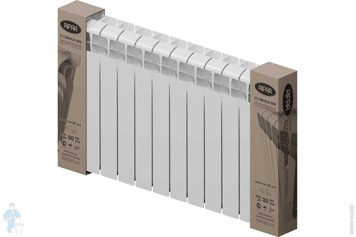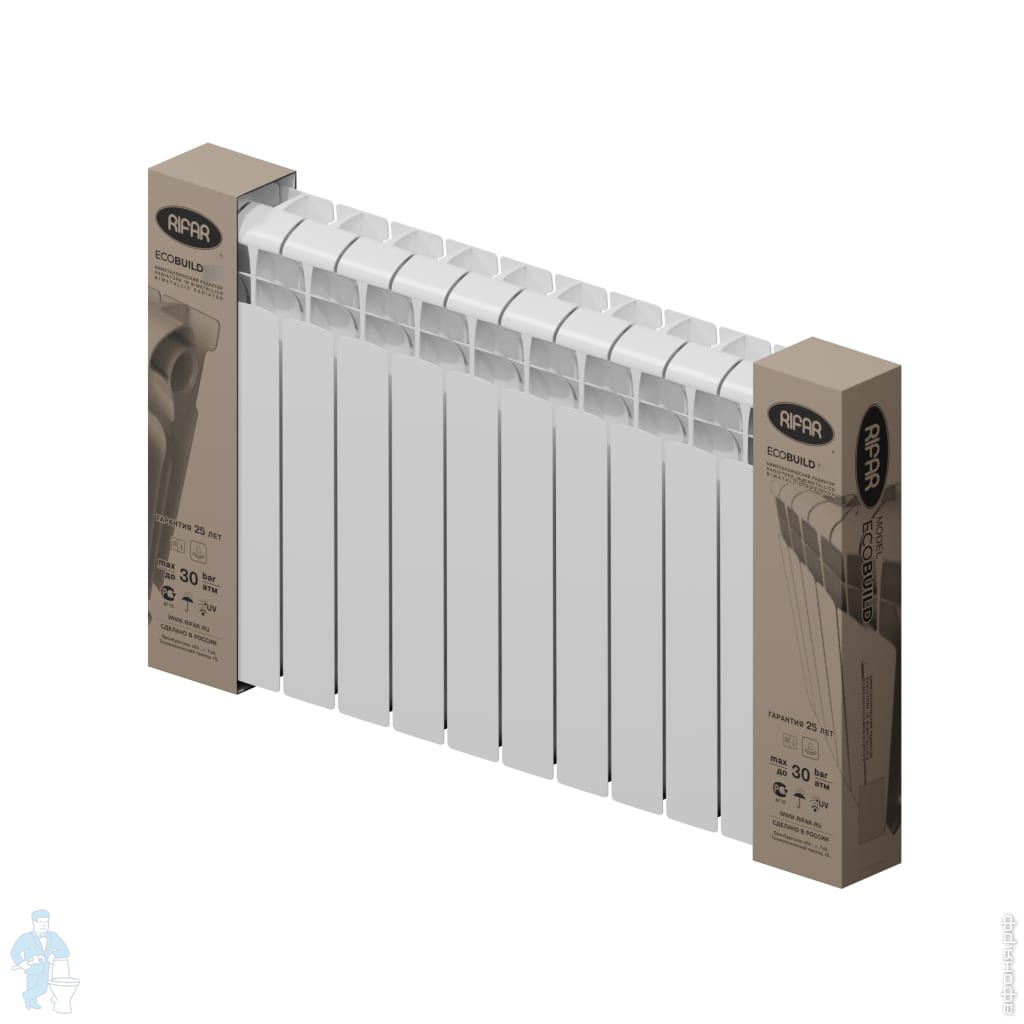 Радиатор биметаллический RIFAR BASE 200 (261х800х100) 10 секции, 1000 Вт, боковое подключение, белыйКод: 138989