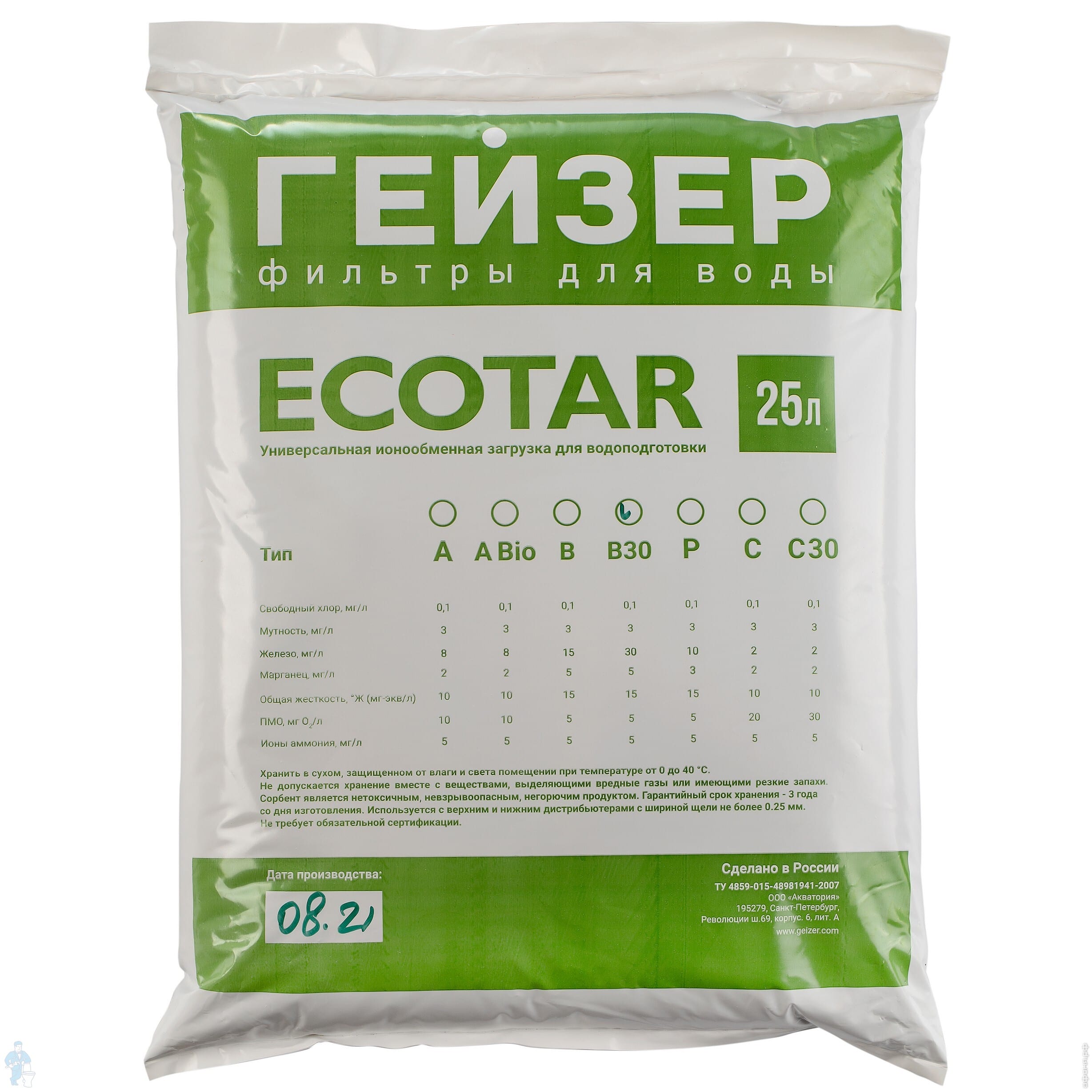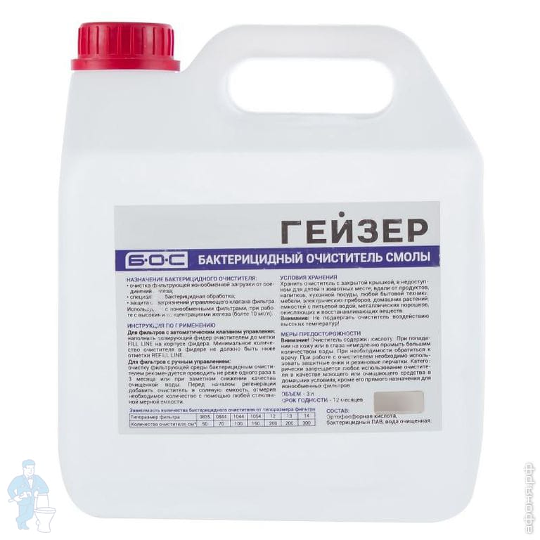 Уникальная особенность таких фильтров Гейзер состоит в использовании только одного фильтра из специальных сыпучих веществ, состав которых различается в зависимости от задачи. Мультикомпонентная загрузка может содержать катионообменные смолы в разнокалиберных гранулах, крупнопористые инертные смоляные гранулы, кварцевую подложку, сорбенты. Все это эффективно и быстро очищает воду от основных загрязнителей.