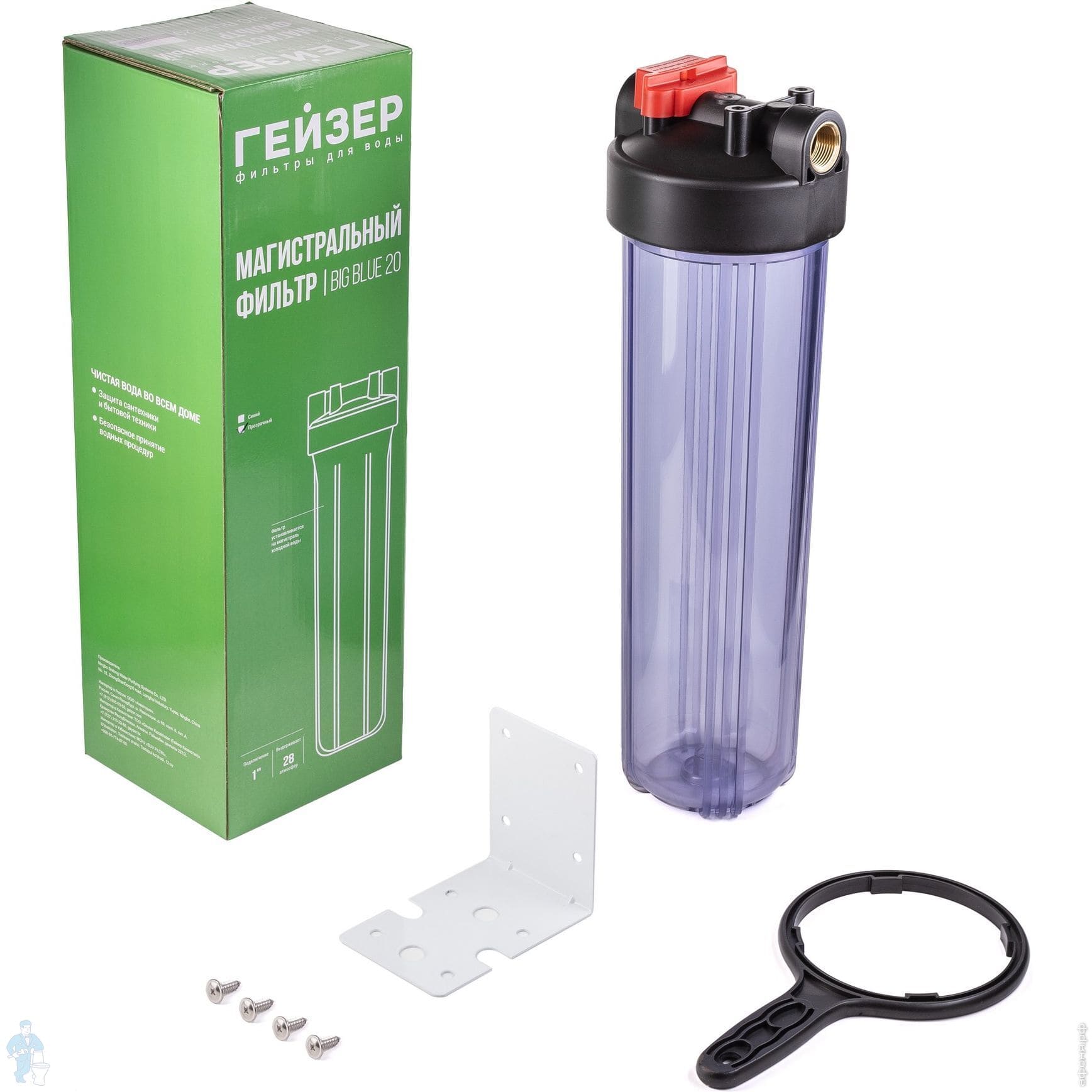 Уценка! ГЕЙЗЕР SL10" Корпус для холодной воды 1/2" прозрачный SAN, синяя крышка, без ниппелей, 50532Код: 29695У