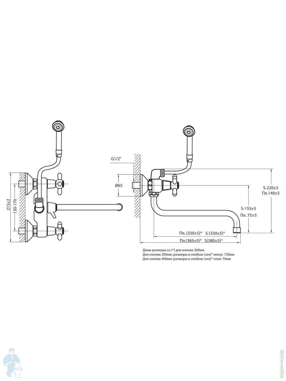 Смеситель для ванны VARION VARIOFIN САЙМА 2022 17 2 керам.перекл., керам.кран-буксы,круг.излив 300ммКод: 55660