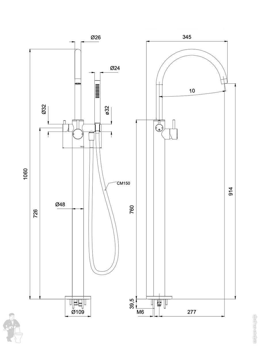 Смесители для ванны напольные