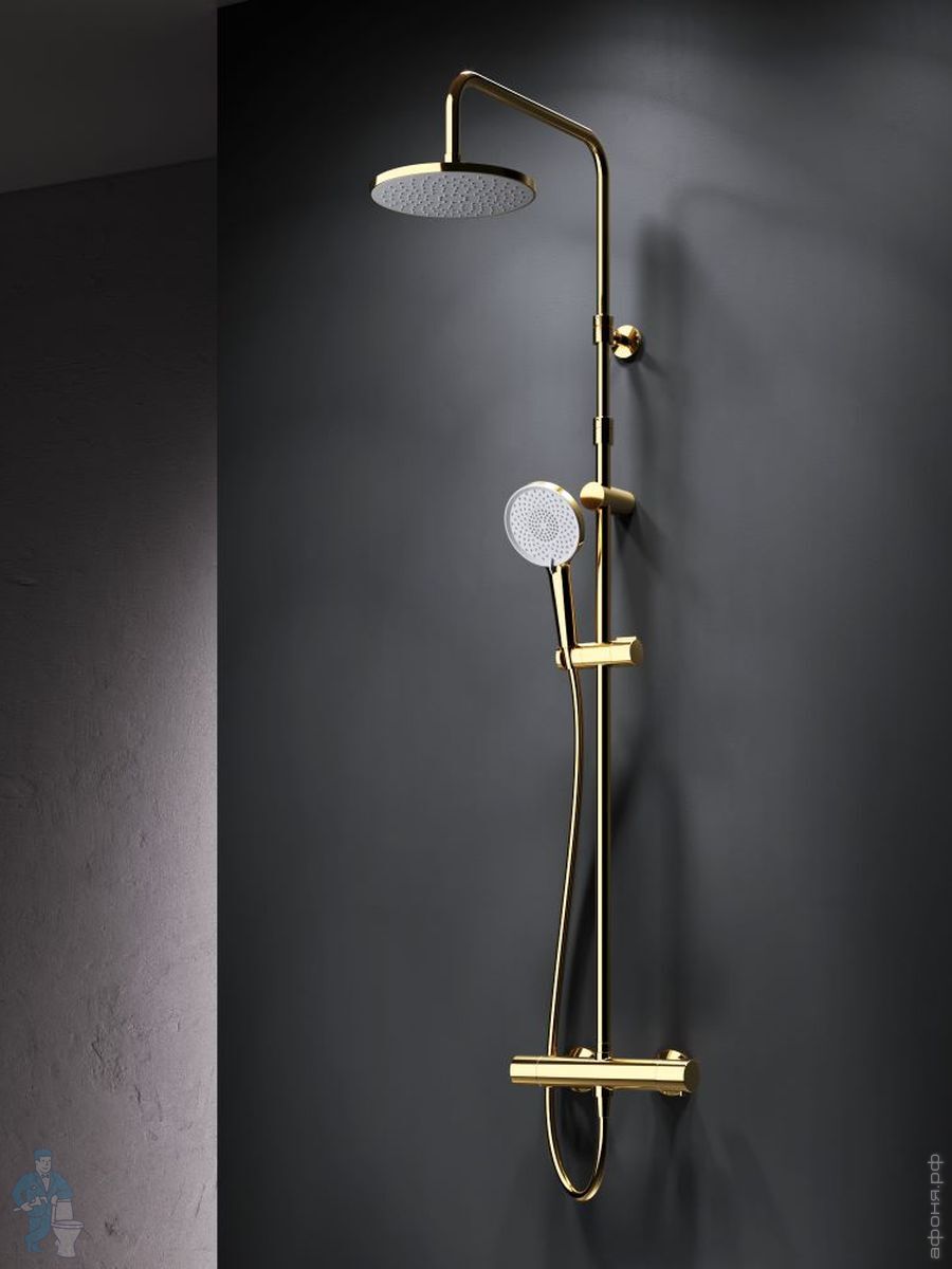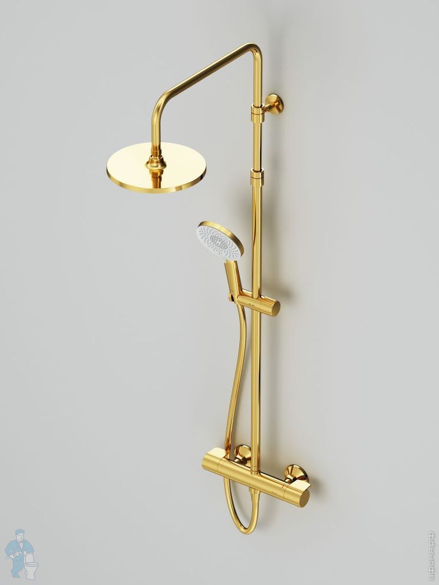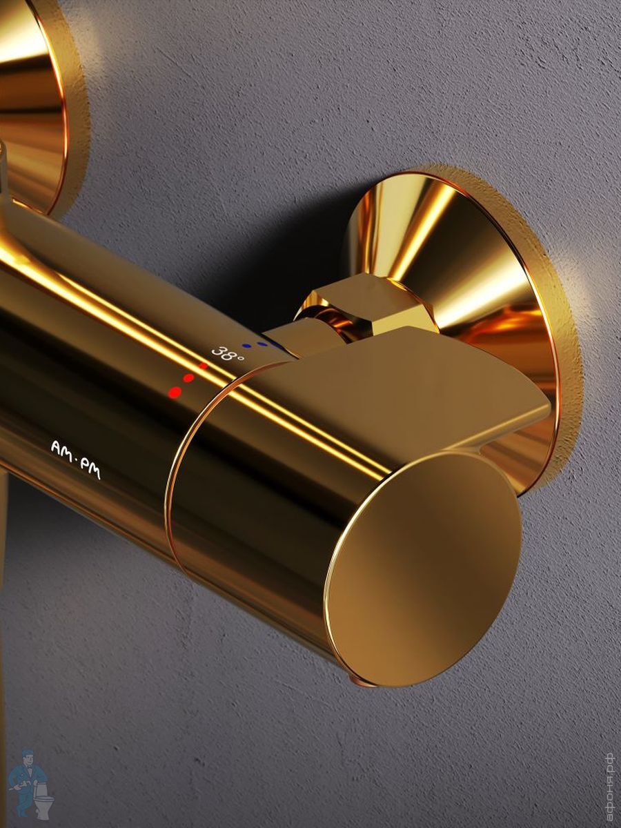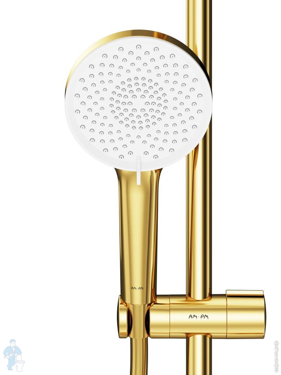 Душевая система AM.PM X-Joy F0785A599 смеситель для ванны/душа термостат, верхний/ручной душ, золотоКод: 337421