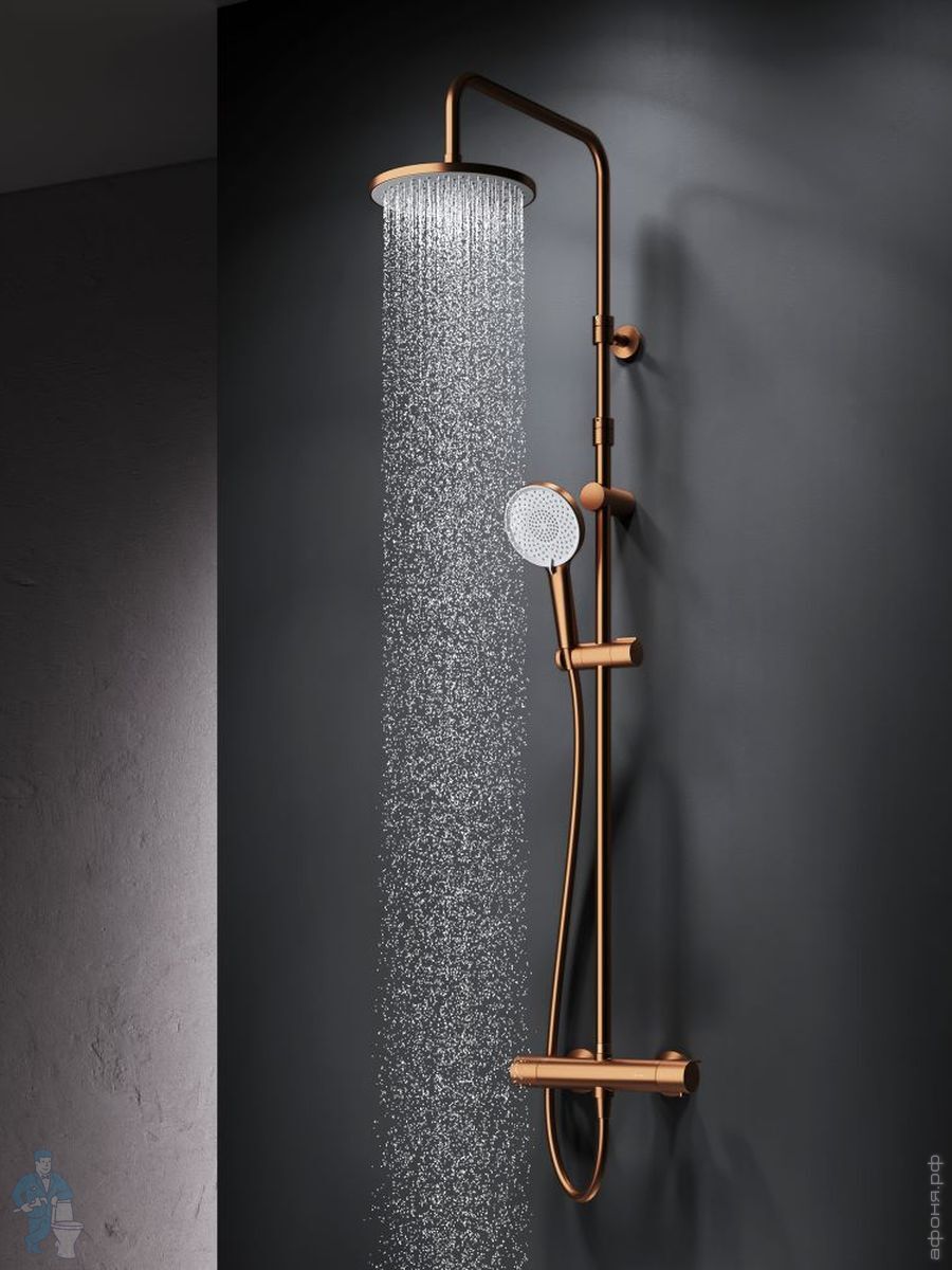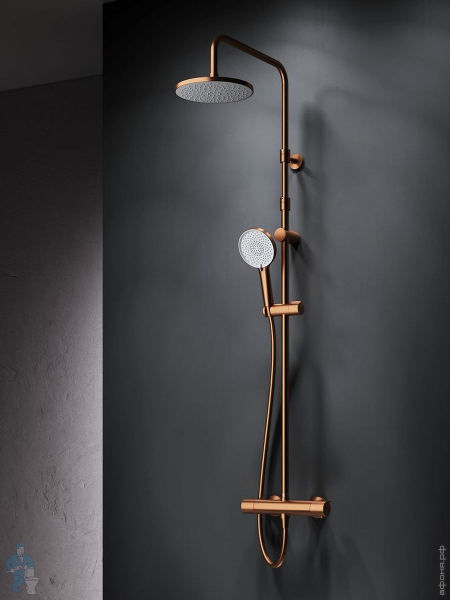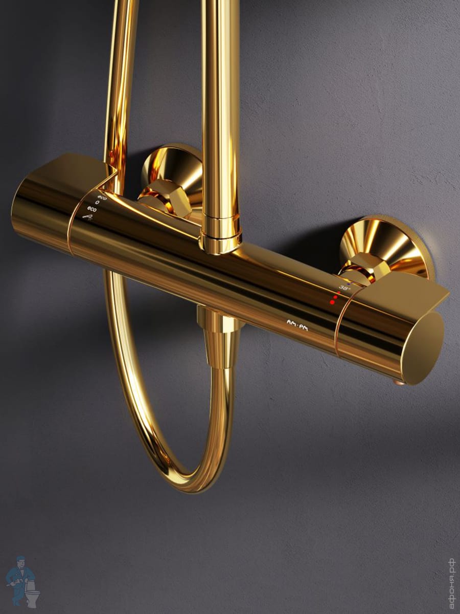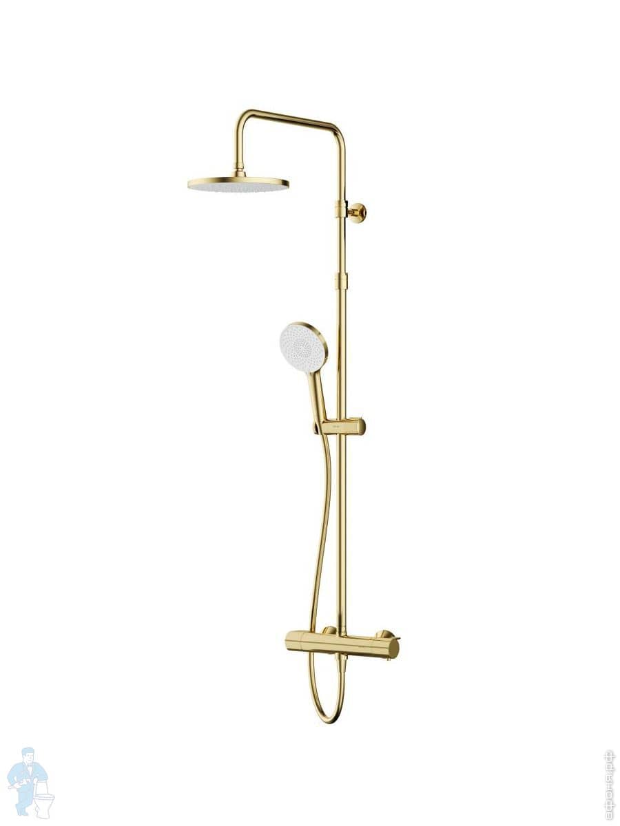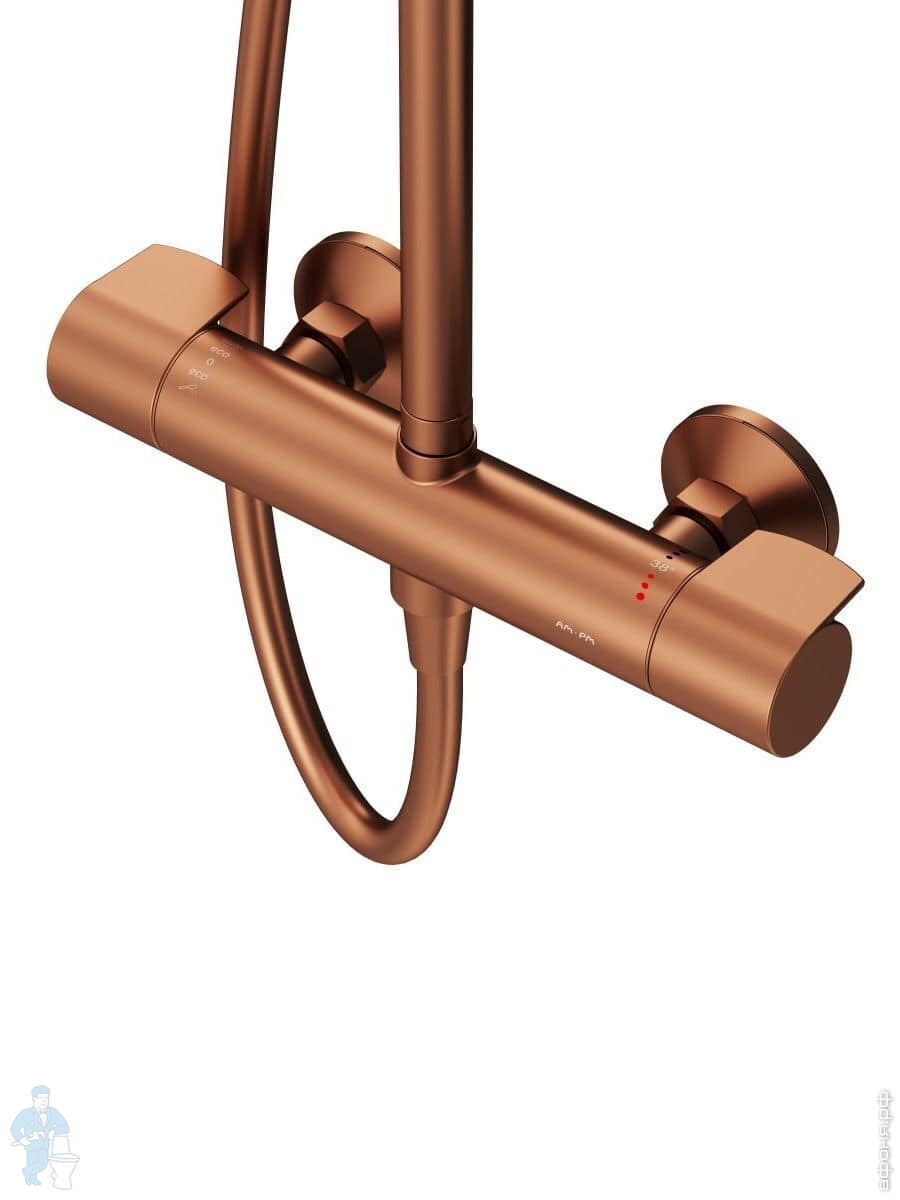 Душевая система AM.PM X-Joy F0785A599 смеситель для ванны/душа термостат, верхний/ручной душ, золотоКод: 337421