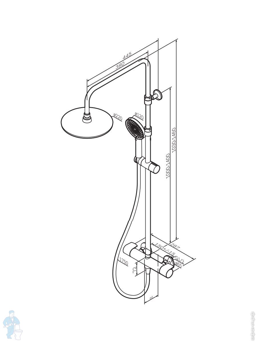 Душевая система AM.PM X-Joy F0785A522, смеситель для ванны/душа, термостат, ручной/верх. душ, черныйКод: 2922012 отзыва