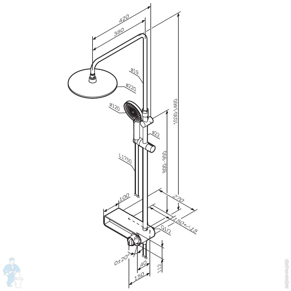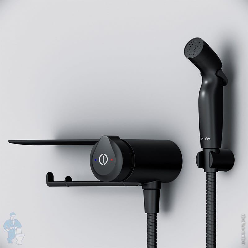 Душевая система AM.PM X-Joy F0785A522, смеситель для ванны/душа, термостат, ручной/верх. душ, черныйКод: 2922012 отзыва