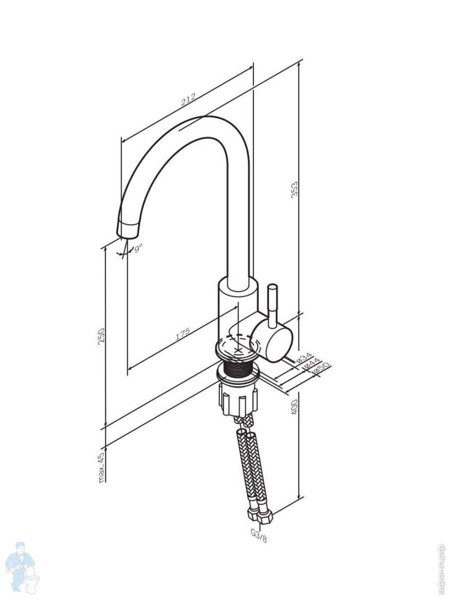 Смеситель для кухни AM.PM X-Joy S F85B05722 L-образный излив, с каналом для фильтр. воды, черный матКод: 347815