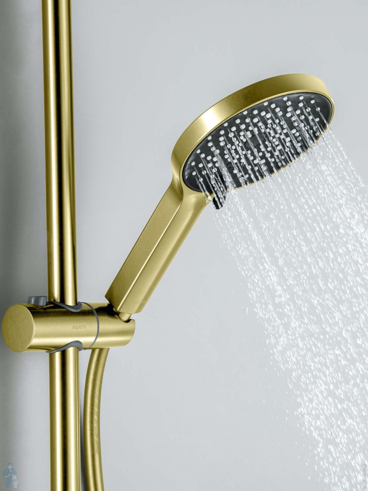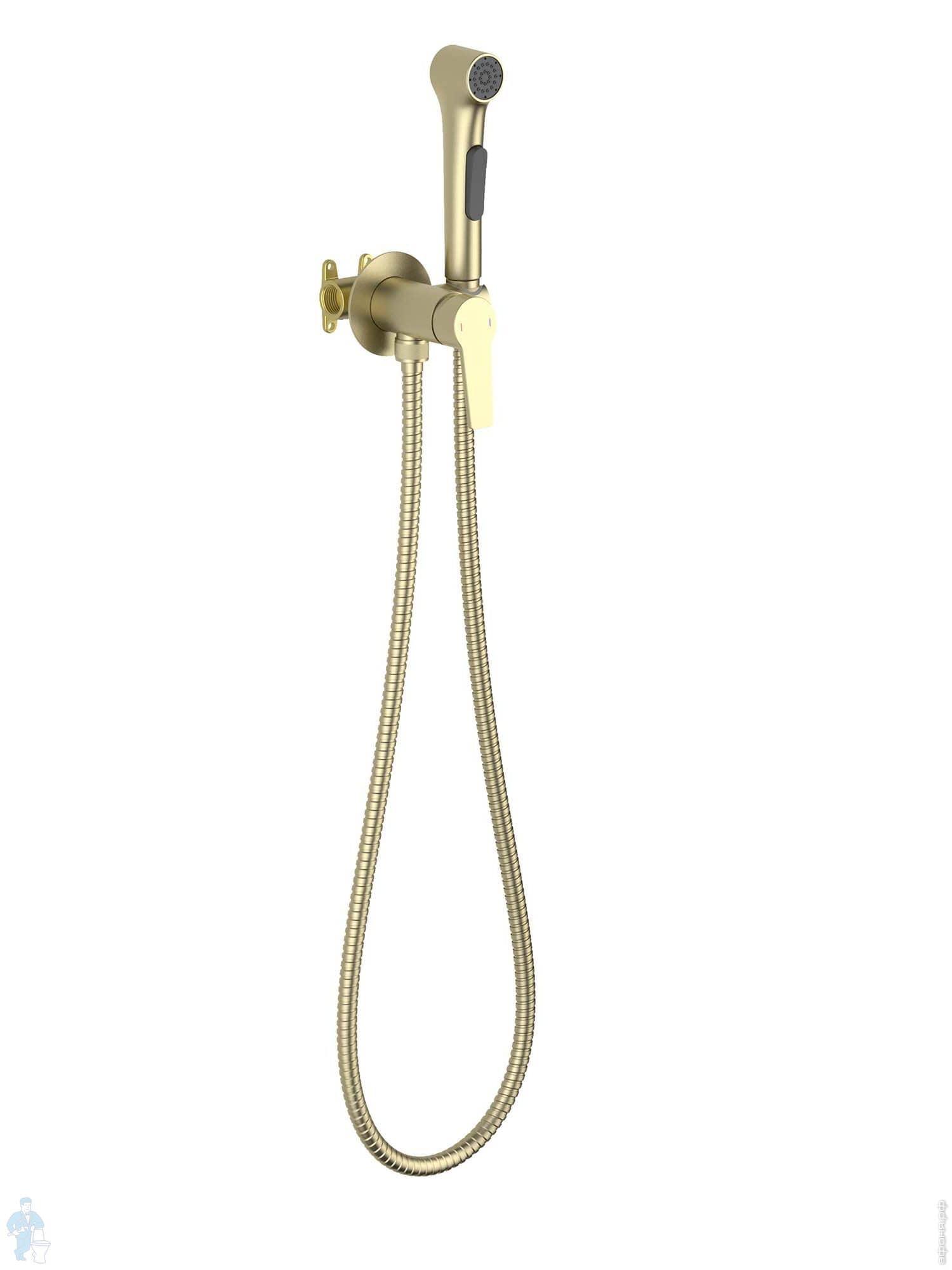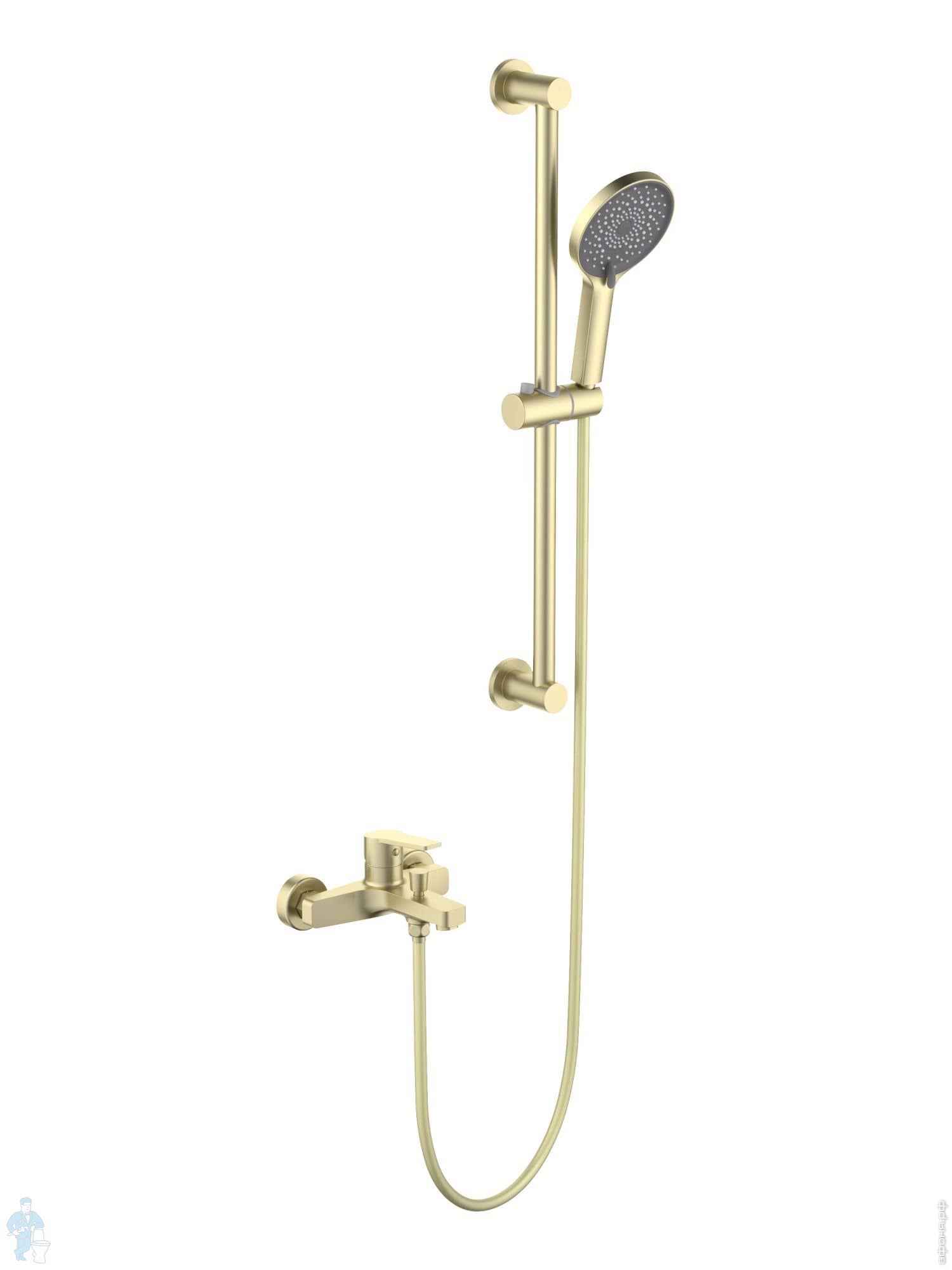 Смеситель для ванны/душа Aquatek Лугано AQ1748BG настенный, с душевым гарнитуром, золото шлифованноеКод: 358508