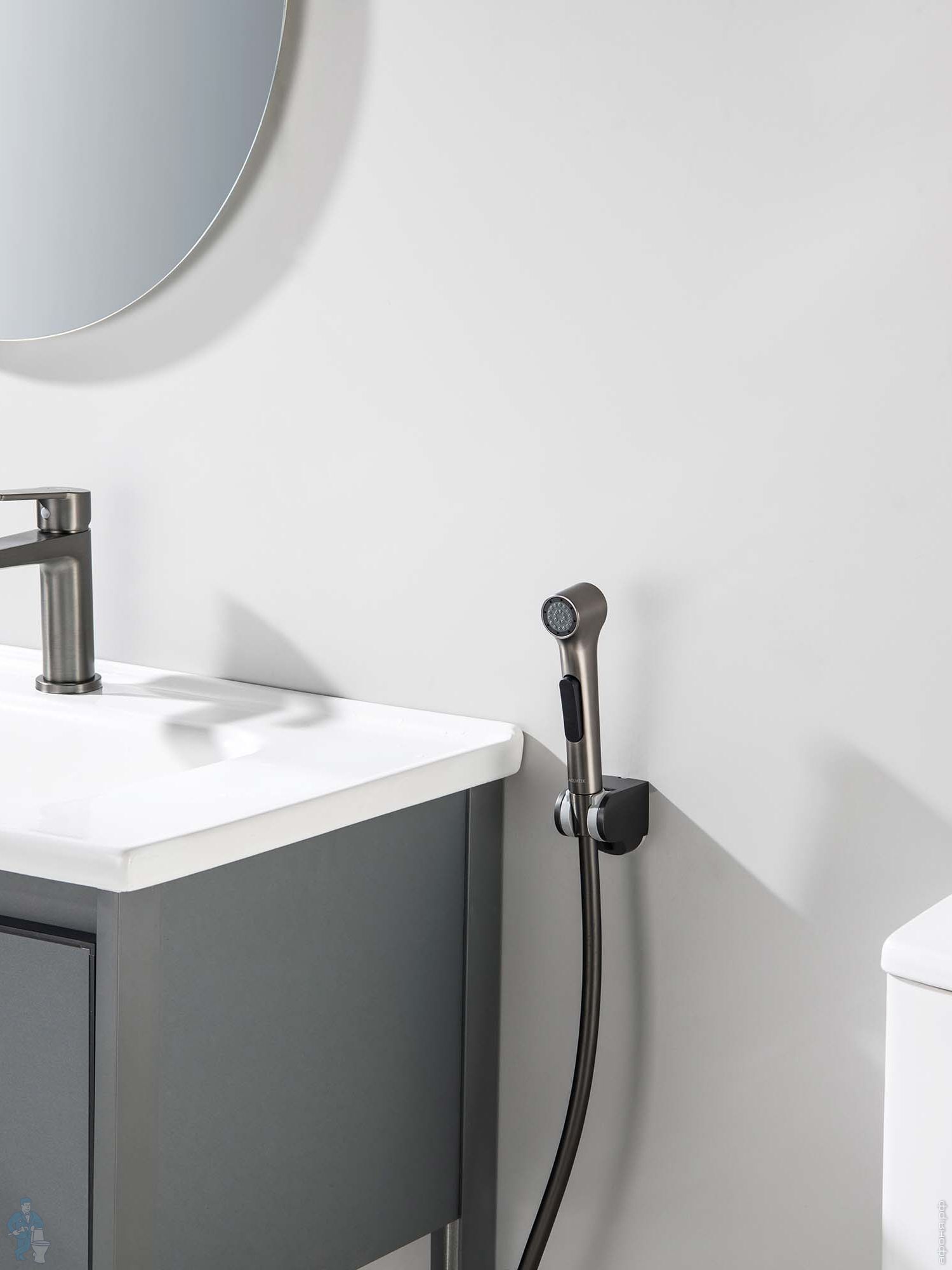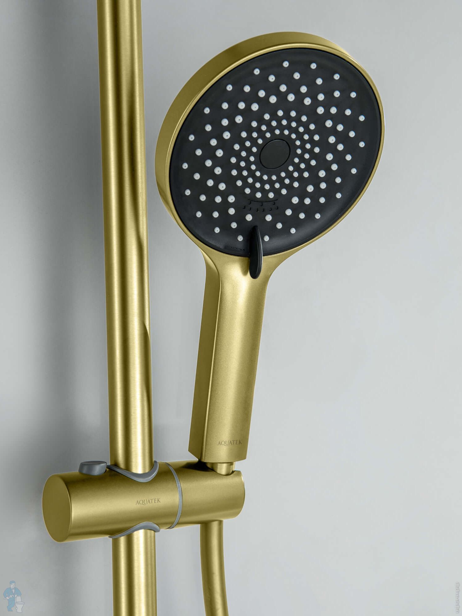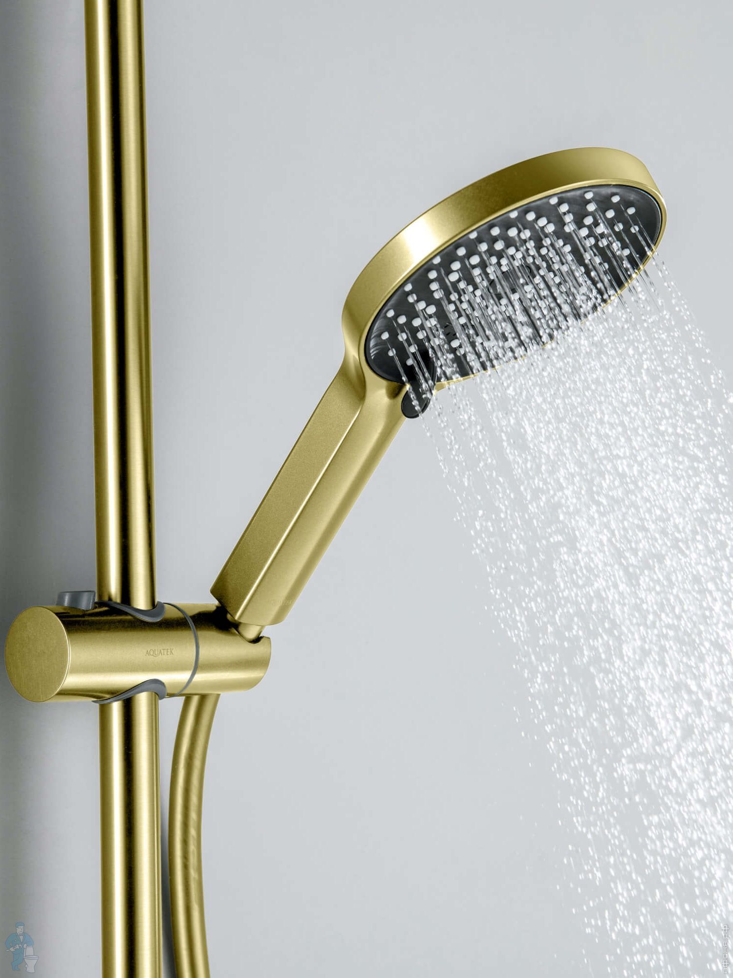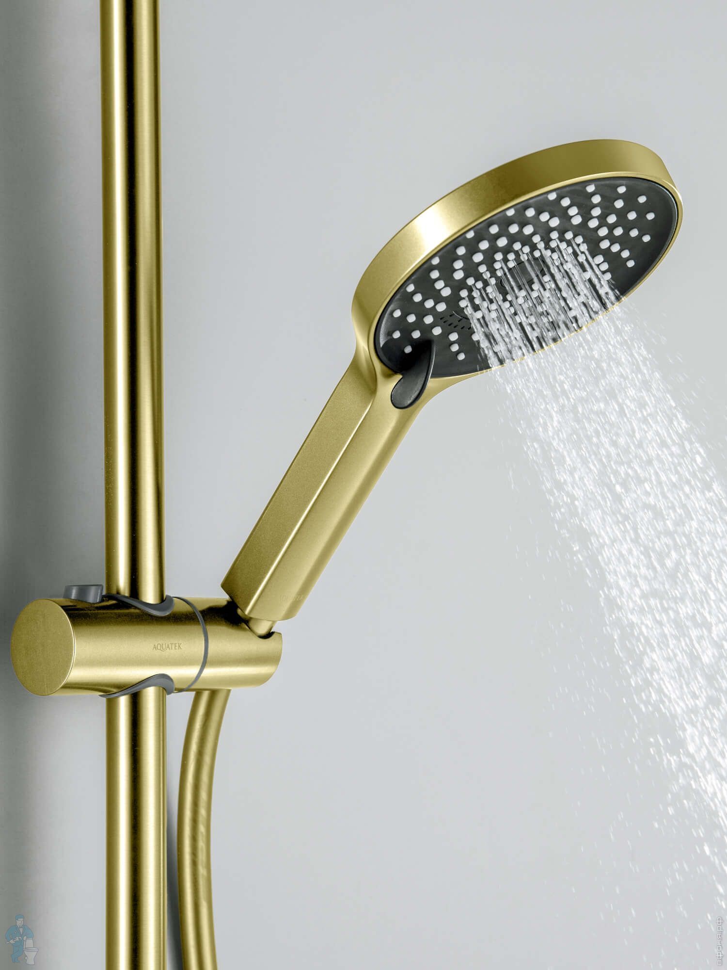 Смеситель для ванны/душа Aquatek Лугано AQ1748BG настенный, с душевым гарнитуром, золото шлифованноеКод: 358508