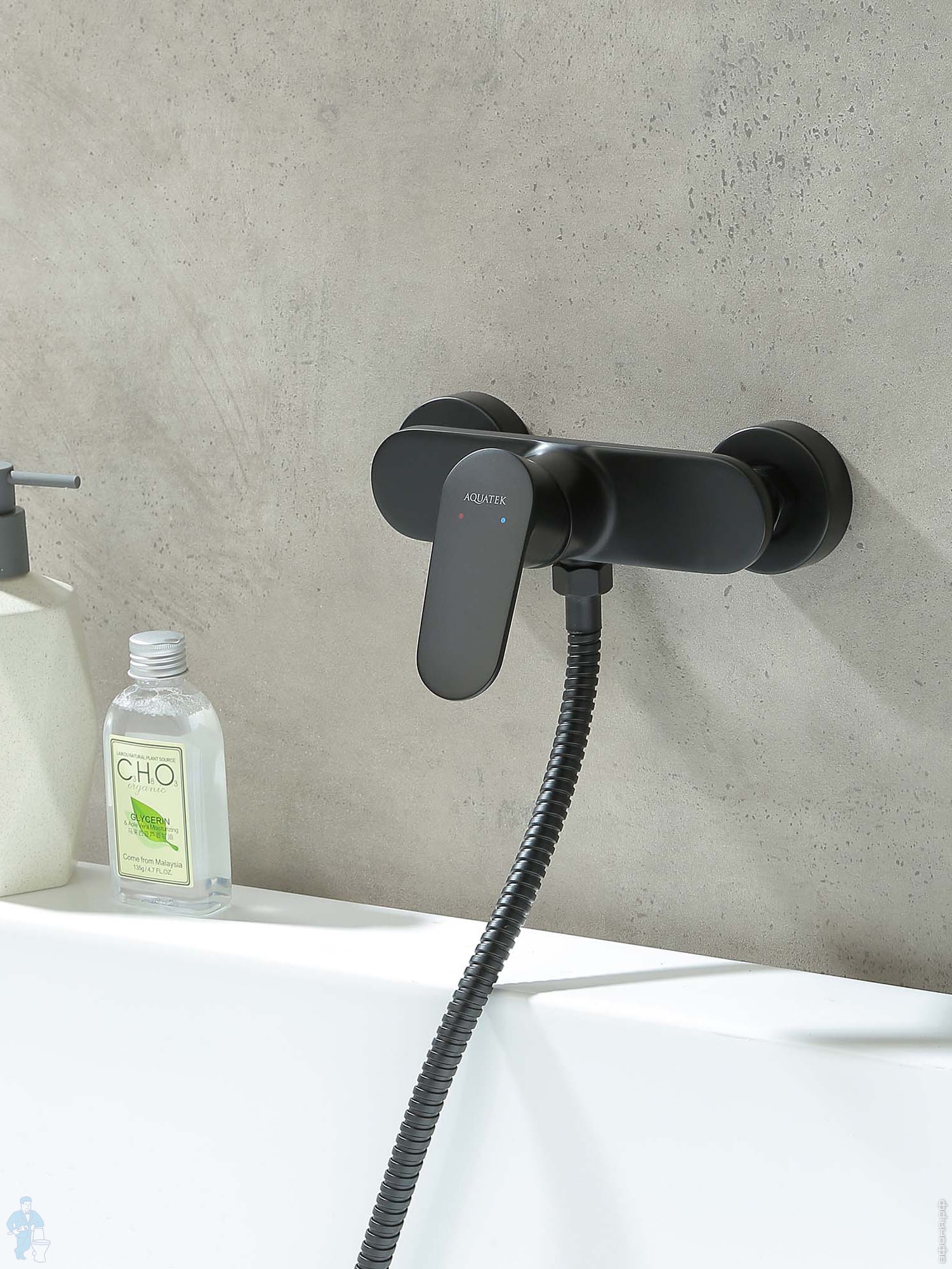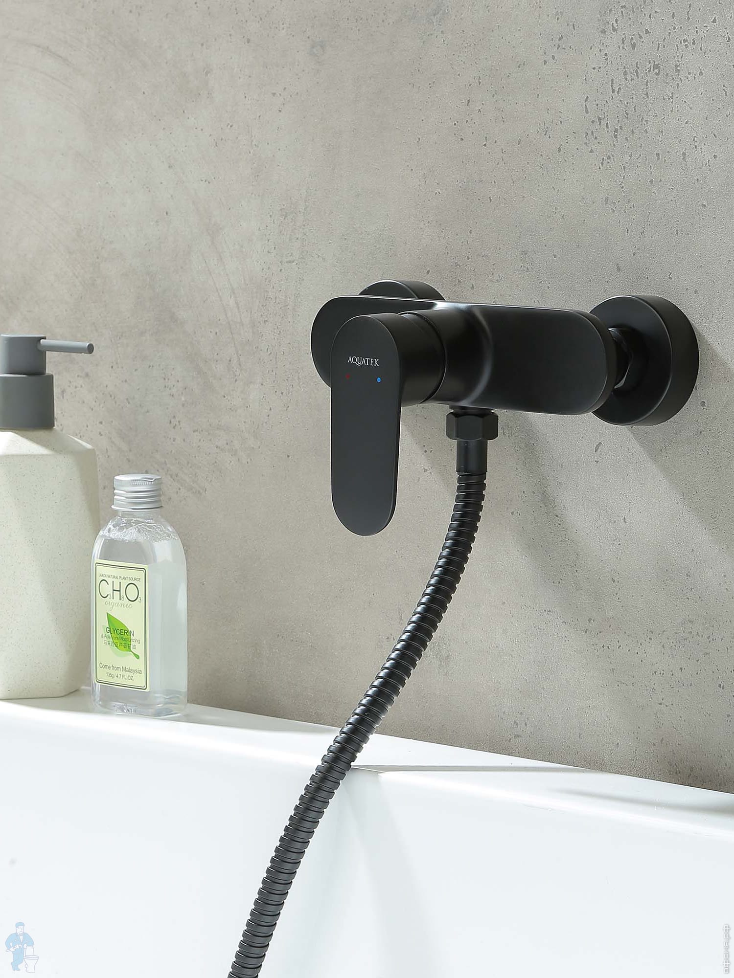 Смеситель для ванны/душа Aquatek Ника AQ1842MB настенный, однозахватный, излив 350мм, черный матовыйКод: 360718