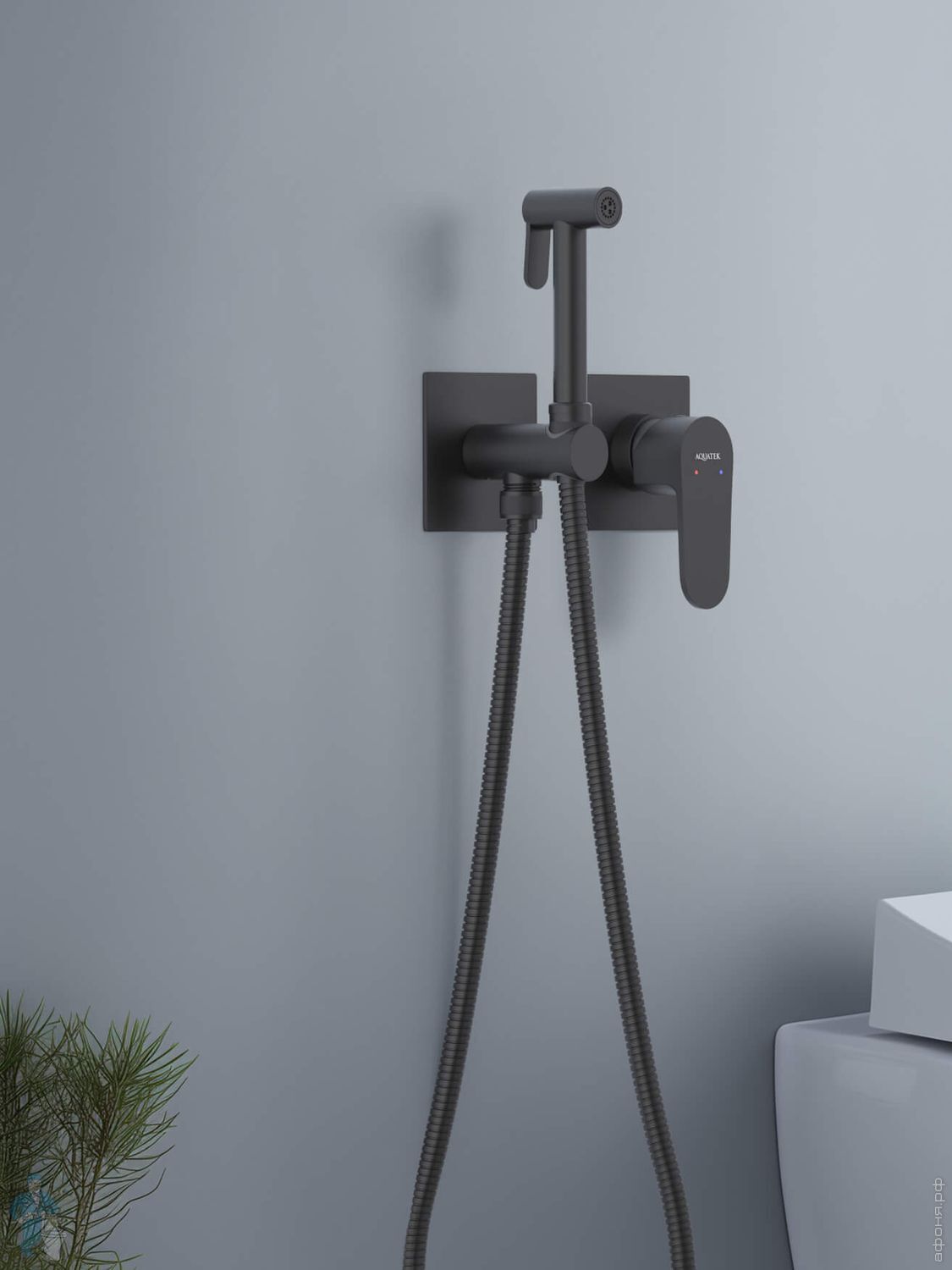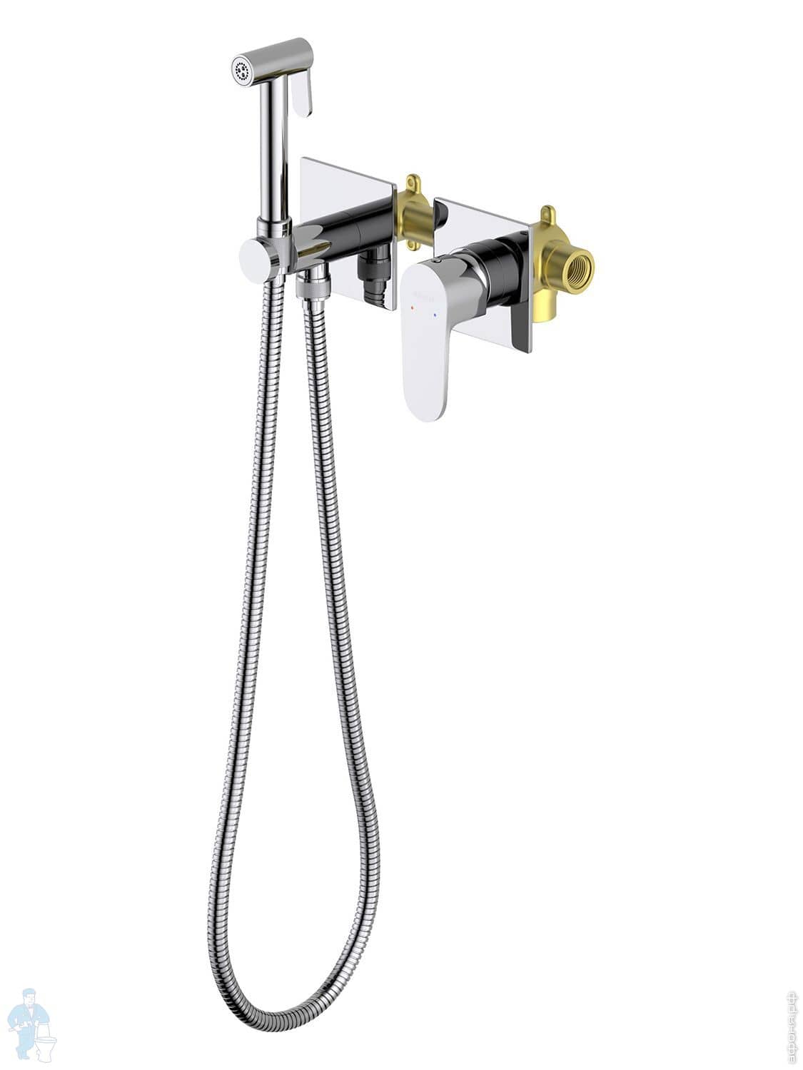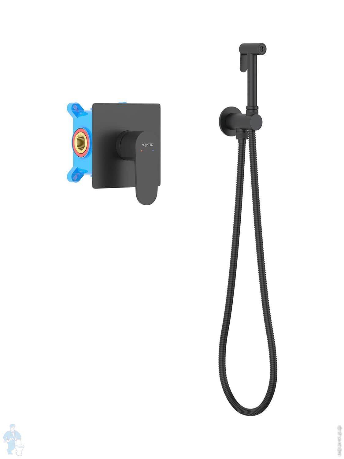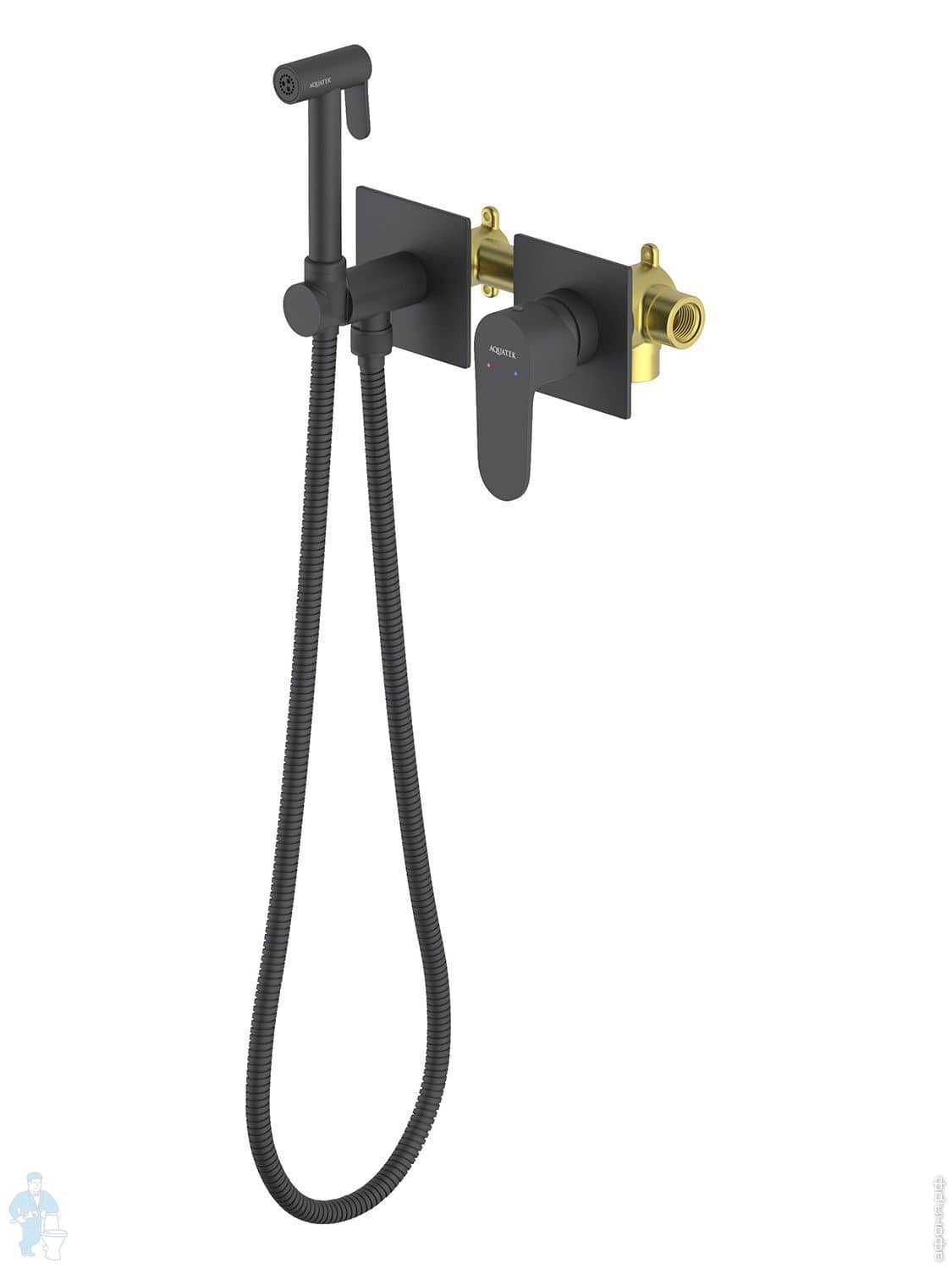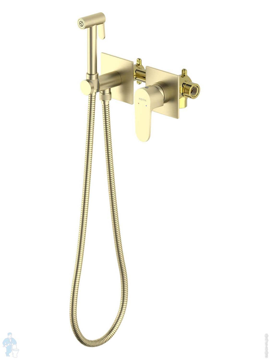 Набор с гигиеническим душем Aquatek Оберон AQ1027BG термостат, 1 отверстие, цвет: золото шлифованноеКод: 360756