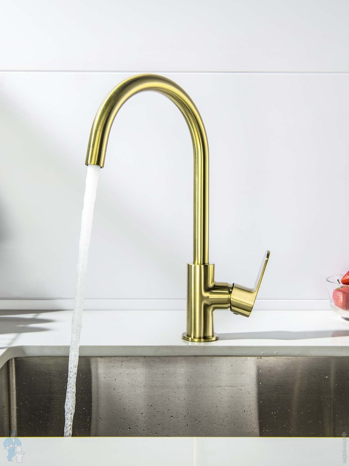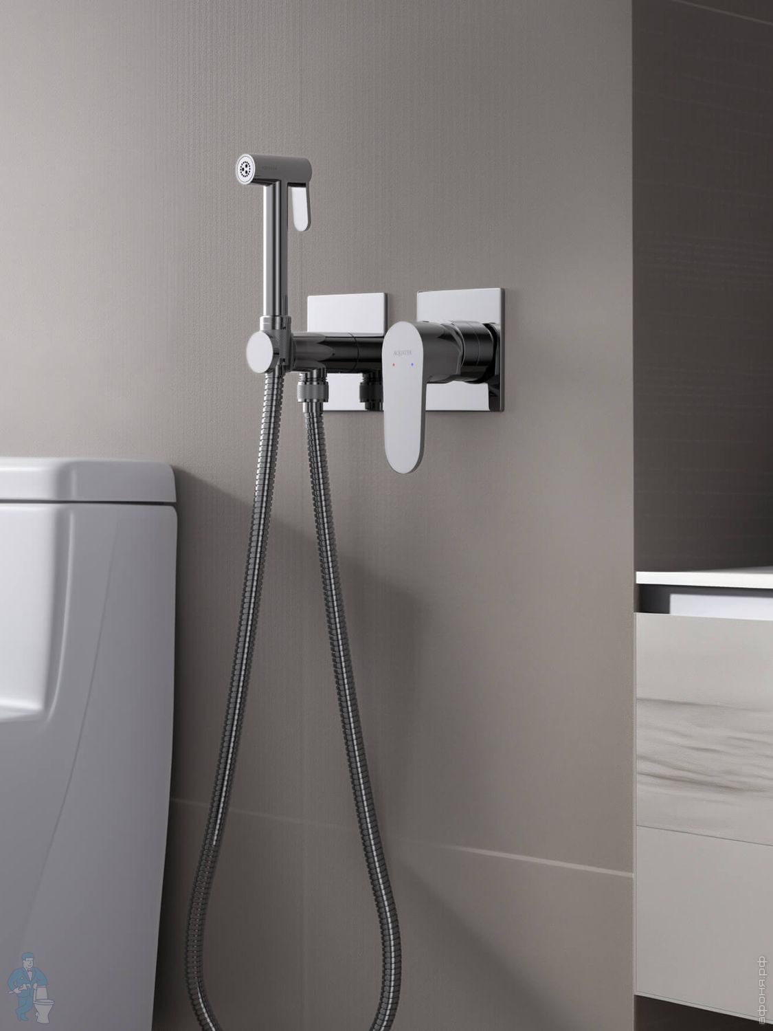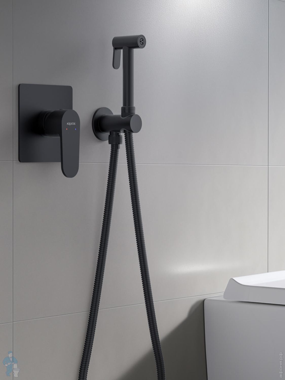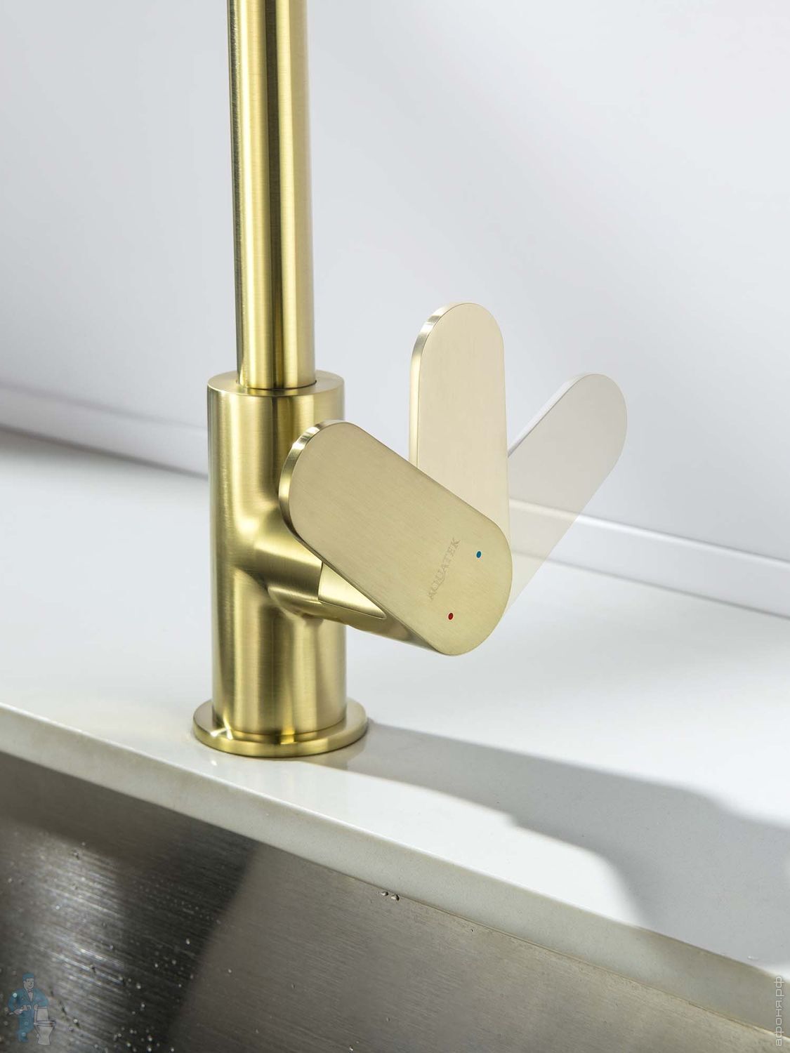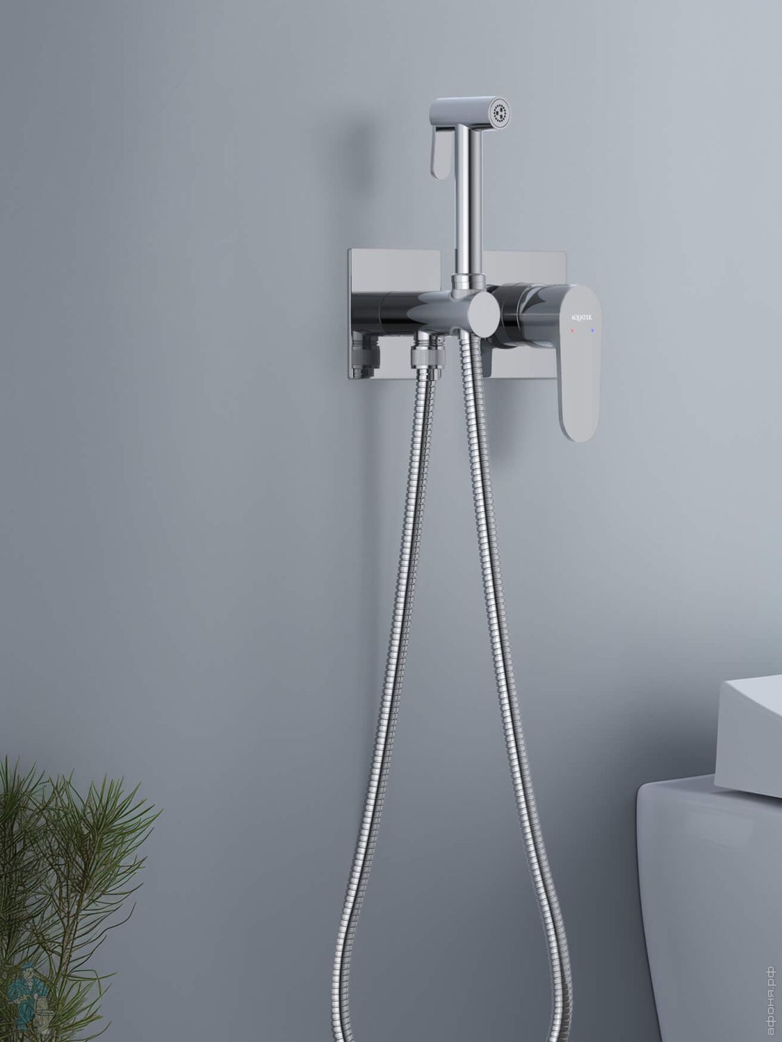Набор с гигиеническим душем Aquatek Оберон AQ1027BG термостат, 1 отверстие, цвет: золото шлифованноеКод: 360756