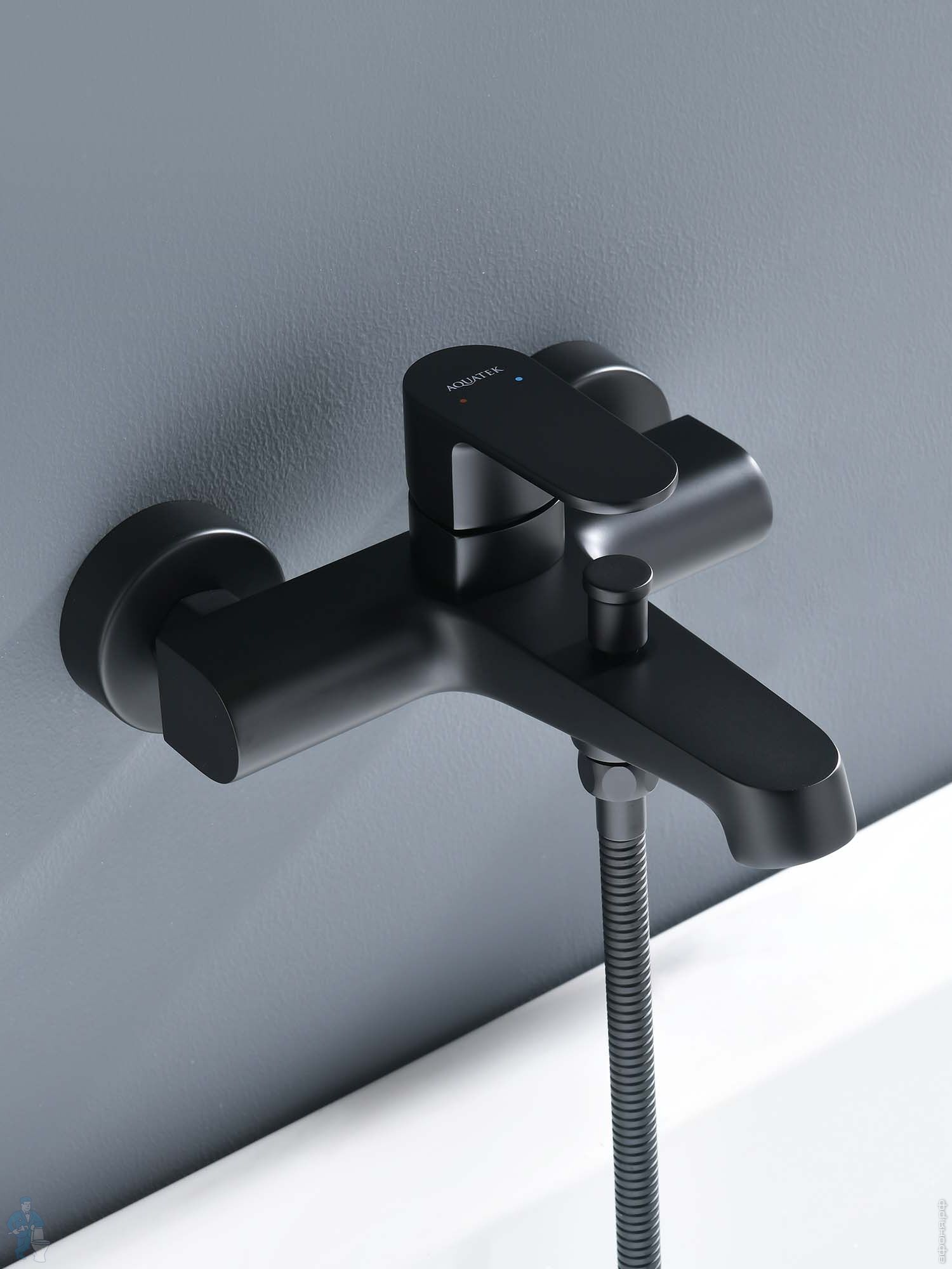 Смеситель для ванны/душа Aquatek Оберон AQ1249BG настенный, с душевым гарнитуром, золото шлифованноеКод: 360802