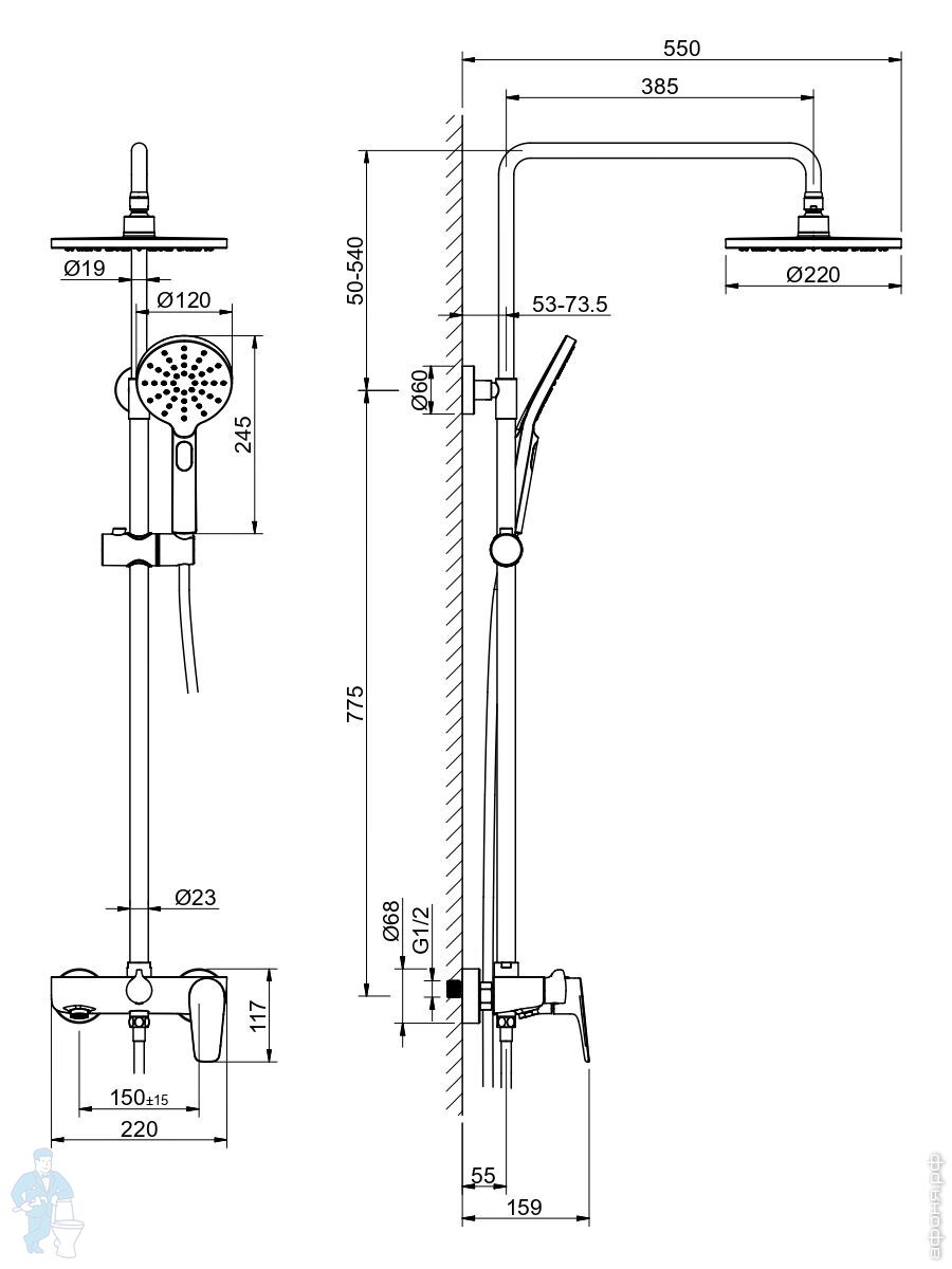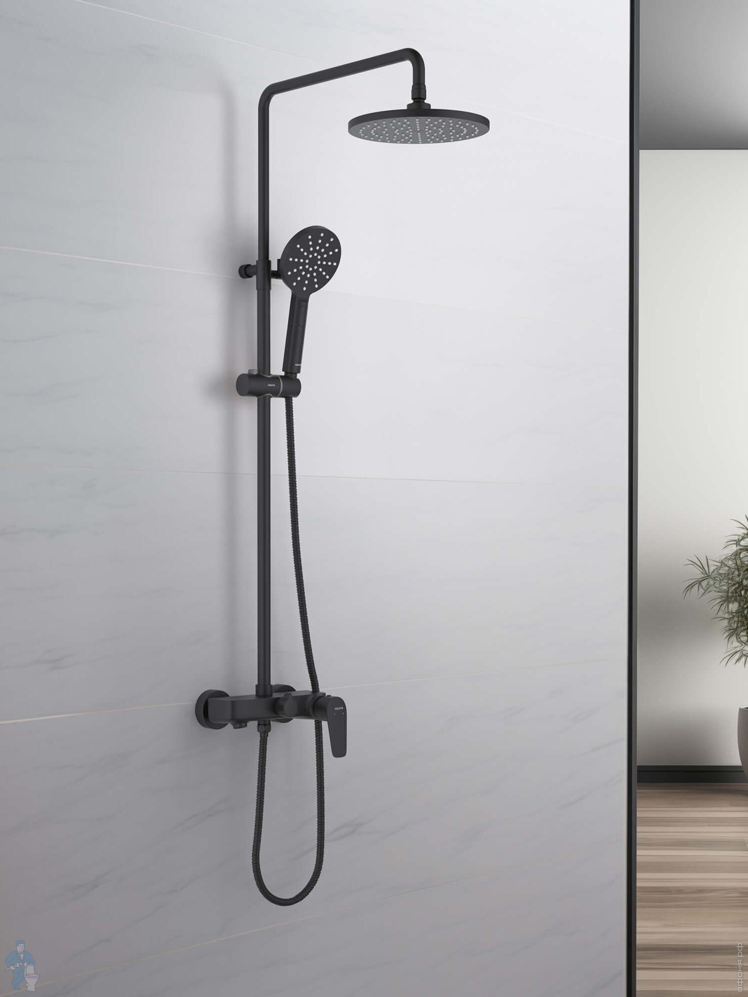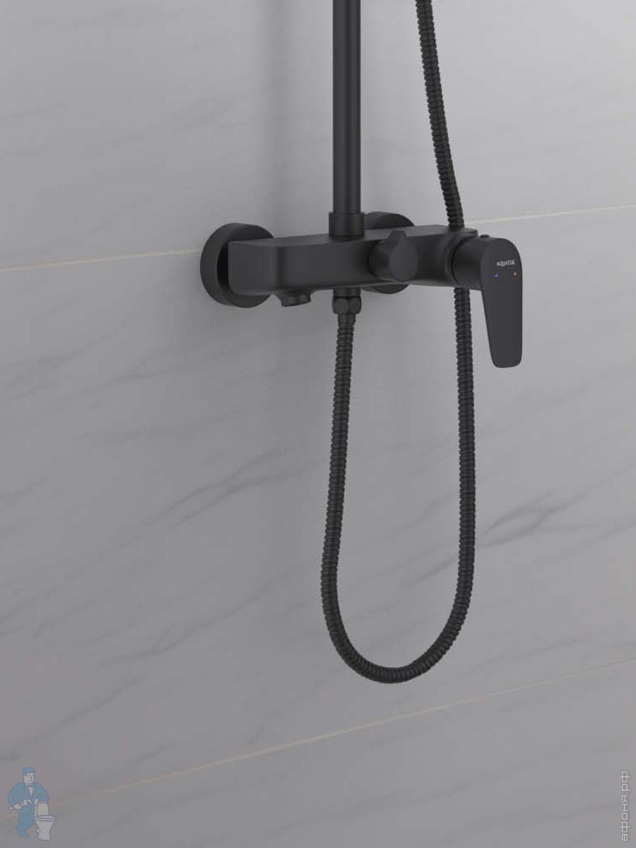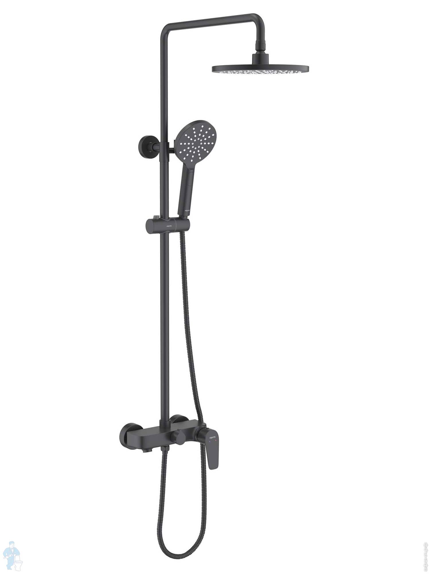 Душевая система Aquatek Либра AQ2640MB для ванны/душа, однозахватный, верх./руч. душ, черный матовыйКод: 359923