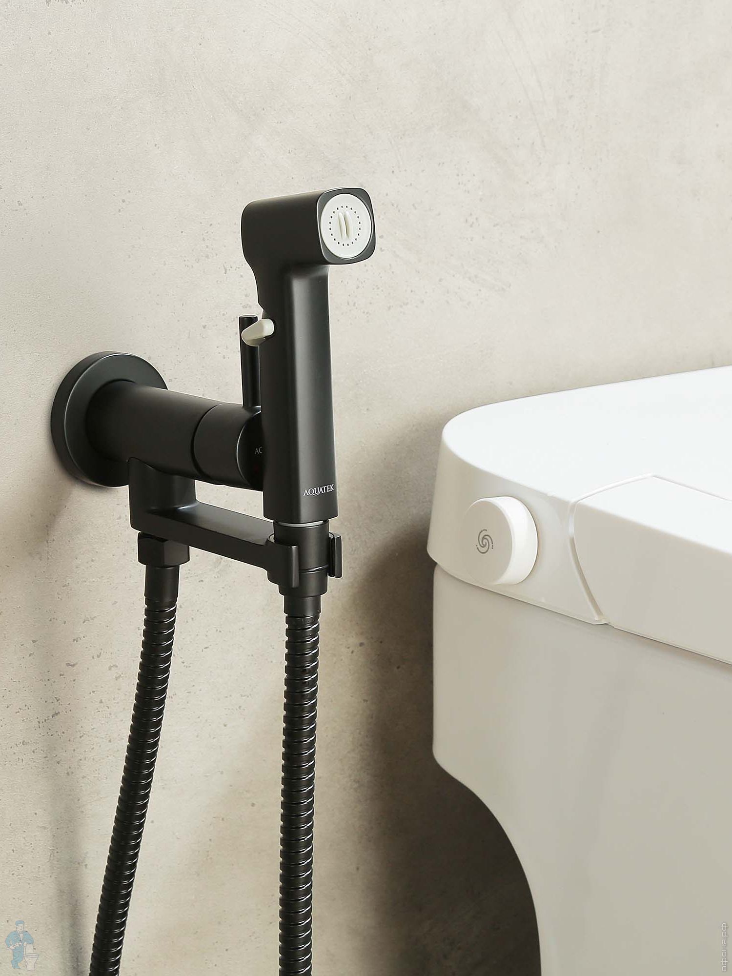 Набор с гигиеническим душем Aquatek Оберон AQ1027BG термостат, 1 отверстие, цвет: золото шлифованноеКод: 360756