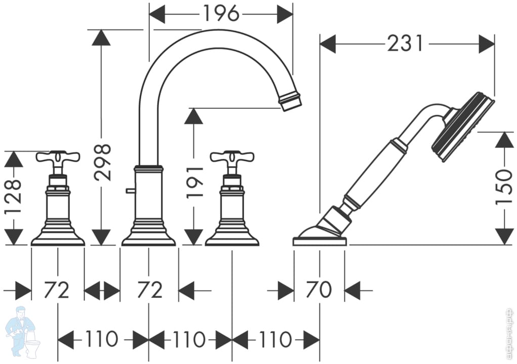 - смесители для ванной