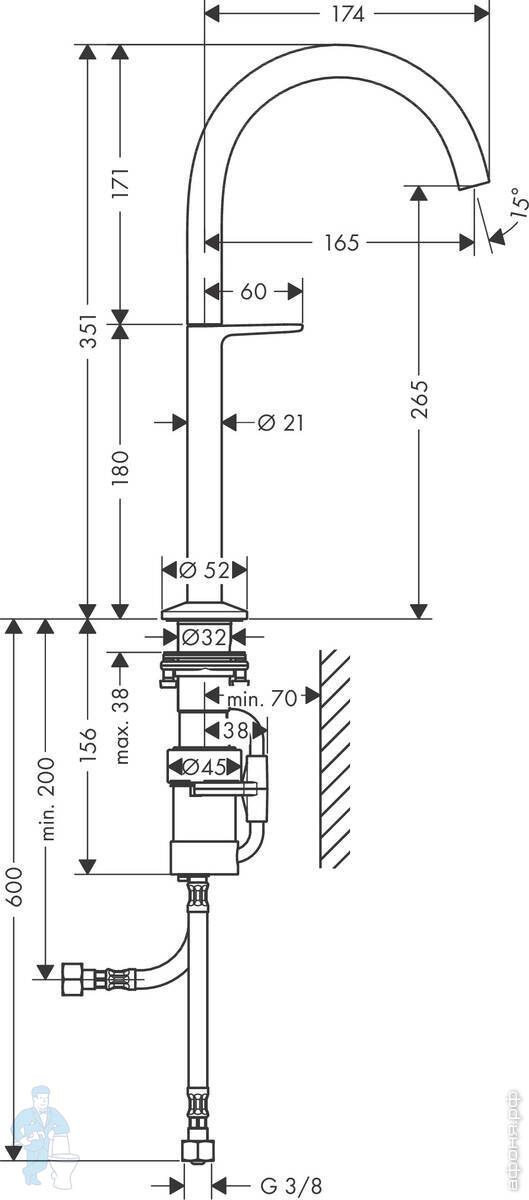 Смеситель Axor One 48000670 для раковины 70, с рычаговой рукояткой, сливной гарнитур, матовый черныйКод: 213188